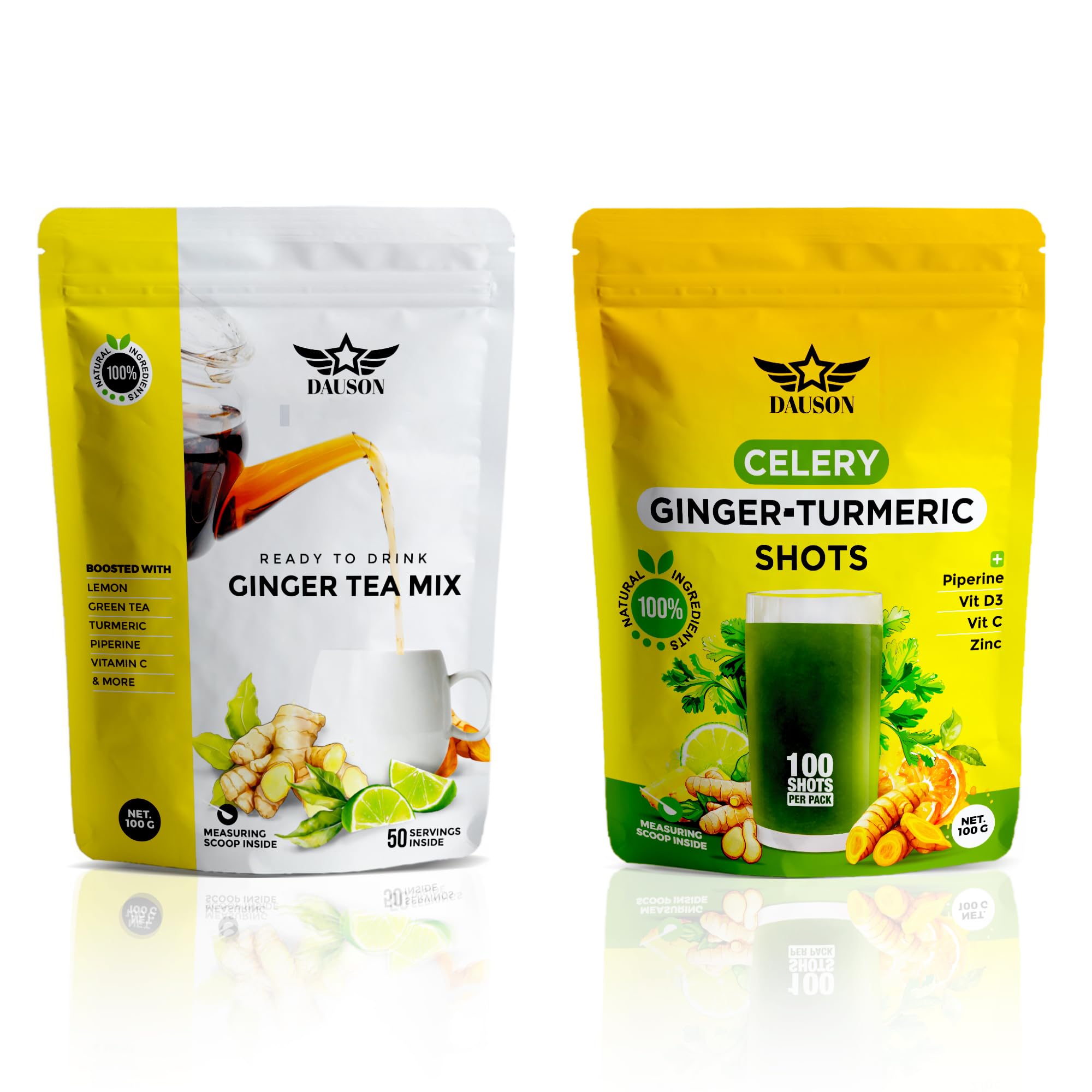 Ginger Turmeric Detox Tea & Wellness Shots Refreshing Lemon Licorice & Decaf Green Tea Blend with Celery Inulin Pineapple Vitamin C D3 & Zinc | 100 Servings | Caffeine-Free Vegan Gut-Friendly