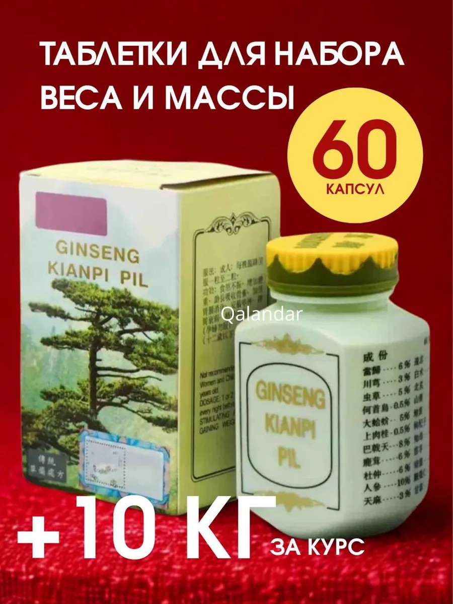 Гинсенг кианпи пил это натуральное средство в капсулах содержит только полезные ингредиенты и продукты без вредных добавок а также более 25 видов аминокислот для мощного прироста твоих мышц.Способ применения Принимать по 1 капсуле 2 раза в день одну днём и одну вечером курс приёма 30 дней.Для кого этот товар? Для тех кто хочет сохранить вес на нужном уровне или кто страдает от проблем с пищеварением. Для тех, кто желает повысить производительность.