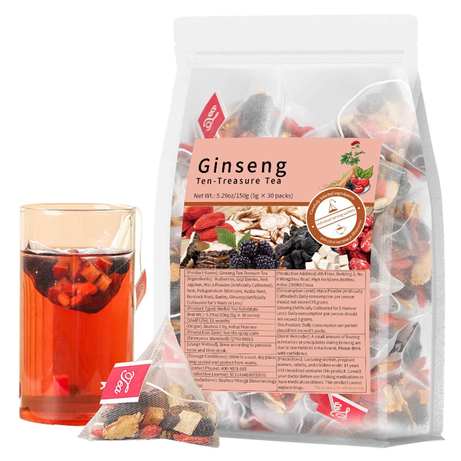 Ginseng Ten Treasure Tea - Ginseng & Mulberry Herbal Tea ten organic herbal tea for Women & Men (30*bag/1*pac)