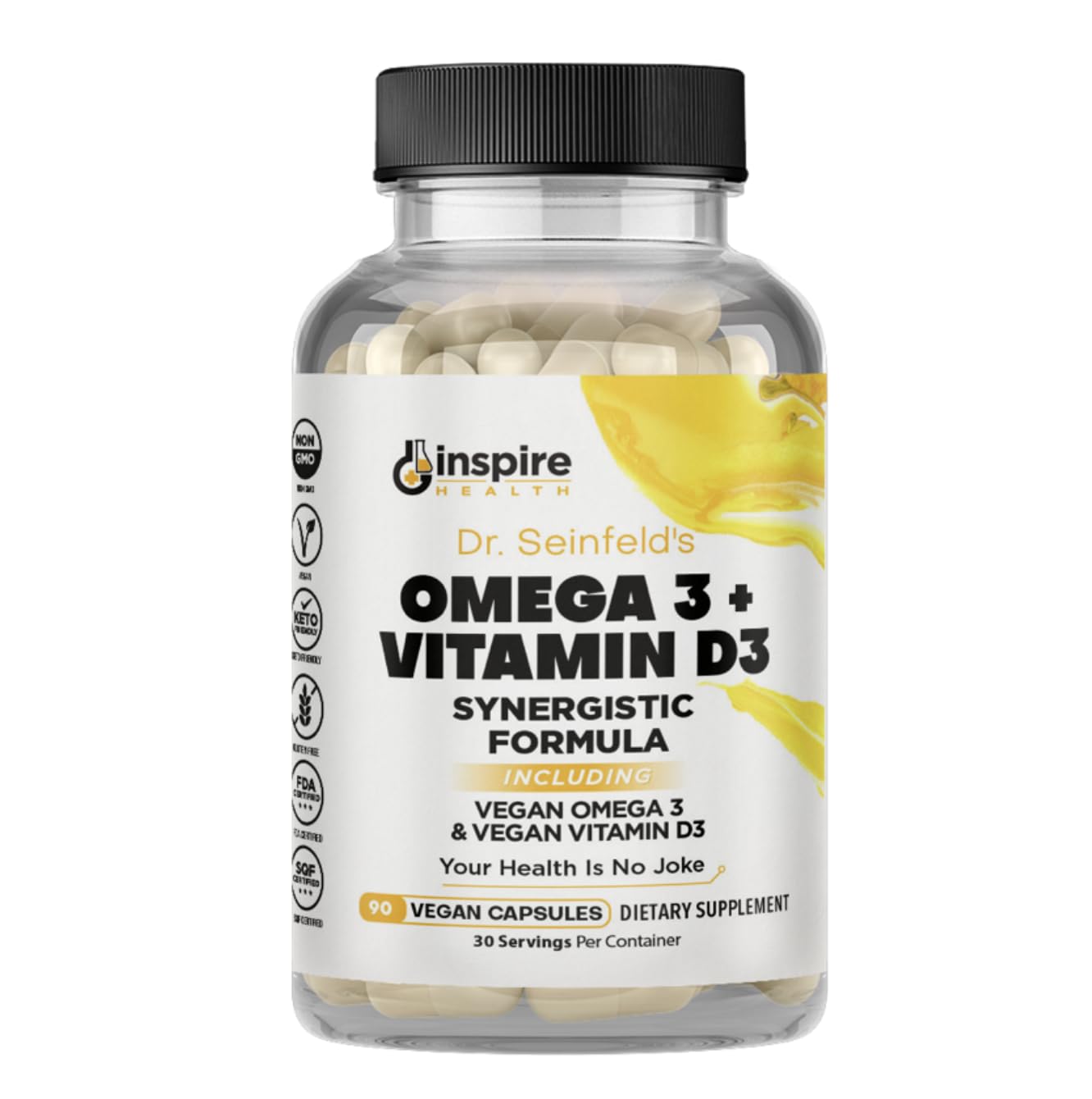 GINSPIRE NUTRITION Dr. Seinfeld Vegan Algae Omega 3 and Vitamin D3 Supplement for Men and Women 90Ct