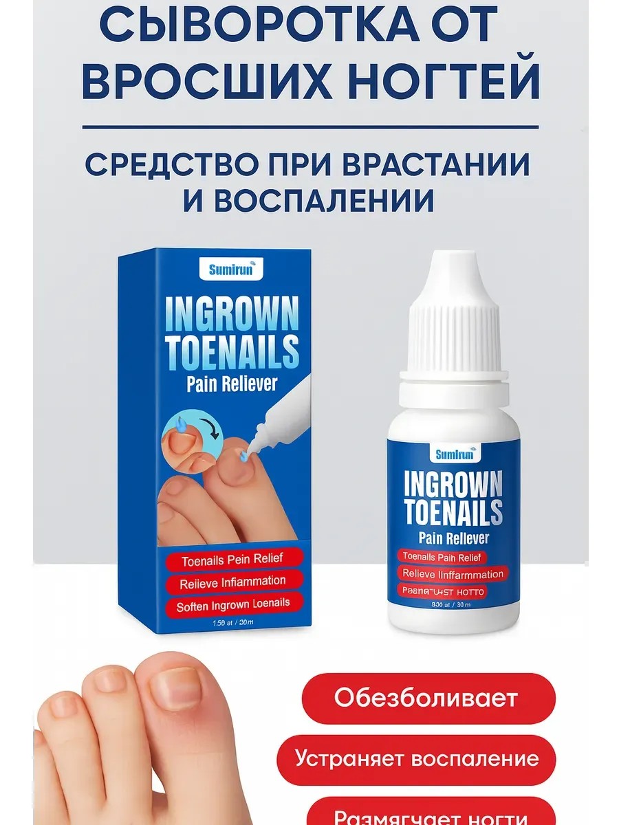 Сыворотка toenais антисептик от вросших ногтей — эффективное средство для размягчения ногтевой пластины, снятия боли и воспаления. Подходит для ухода за проблемными, утолщёнными и вросшими ногтями на ногах и руках. Обладает антисептическими и заживляющими свойствами, помогает предотвратить повторное врастание. Удобна в применении, быстро впитывается, не оставляет липкости. Подходит для домашнего и профессионального ухода.Нас ищут по запросам