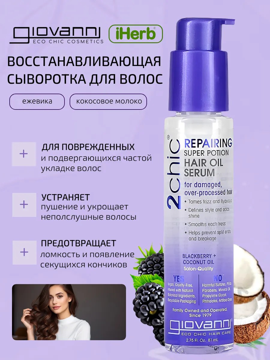 Восстанавливающая сыворотка для волос от Giovanni – это идеальное средство для восстановления и ухода за поврежденными волосами, которое помогает вернуть волосам жизненную силу, блеск и здоровье. Специально разработанная для ослабленных и поврежденных волос, эта сыворотка обогащена мощными маслами для волос, такими как масло жожоба, кокосовое масло и масло ши, которые глубоко питают и увлажняют волосы.