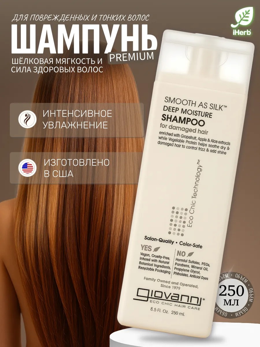 • Мягко очищает и разглаживает волосы, делая их максимально послушными
