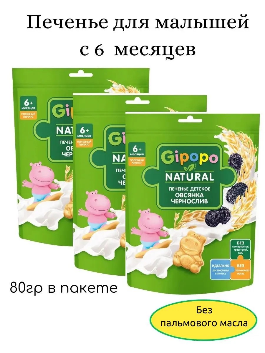 GIPOPO Baby cookies with oatmeal and prunes 80g 3pcs