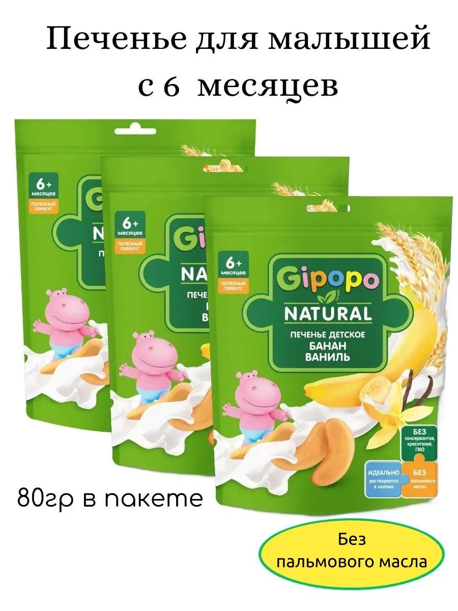 GIPOPO Children's cookies with banana and vanilla 80g 3pcs