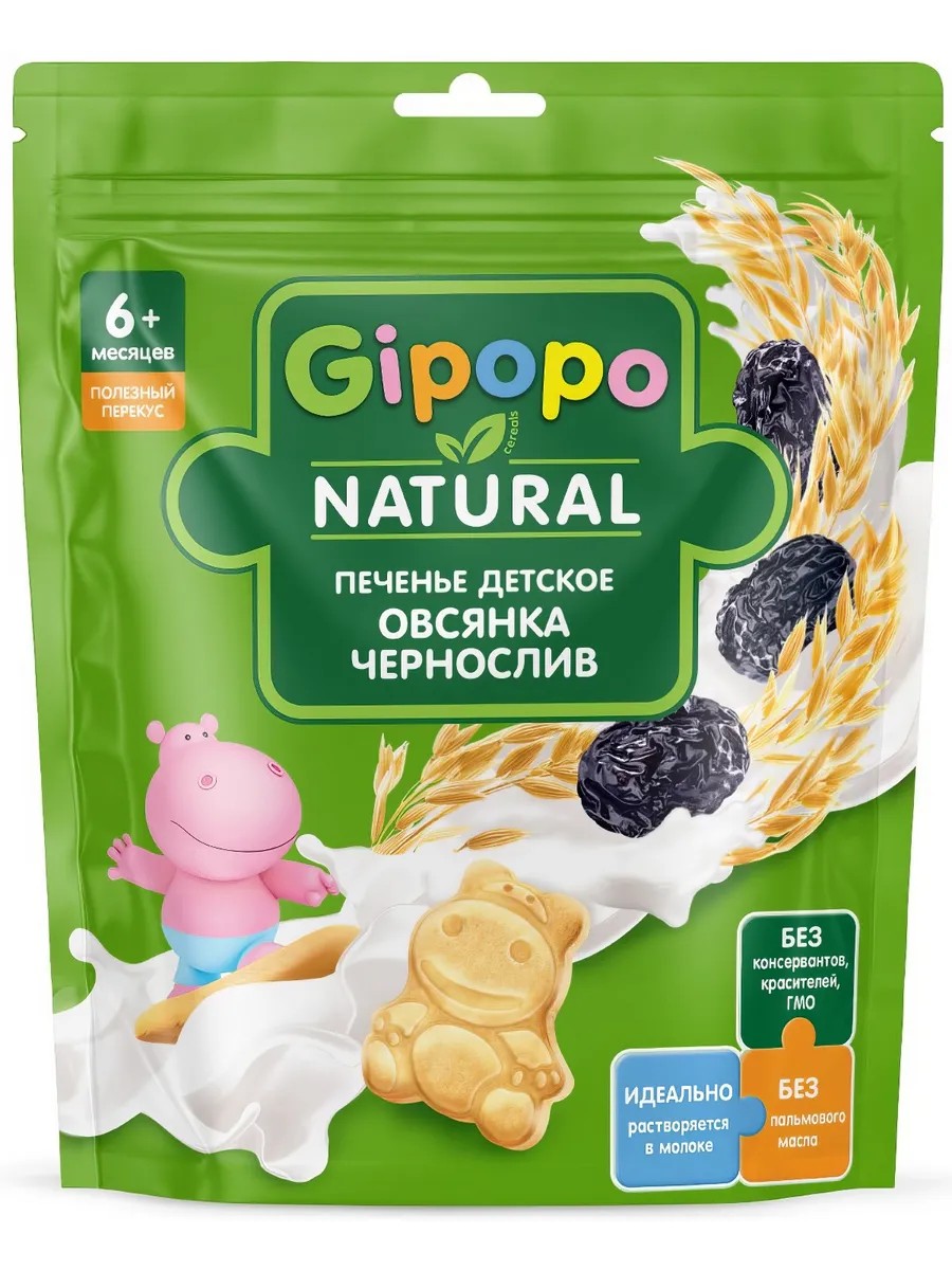 GIPOPO Печенье детское пшеничное Овсянка, чернослив, с 6 мес, 80г