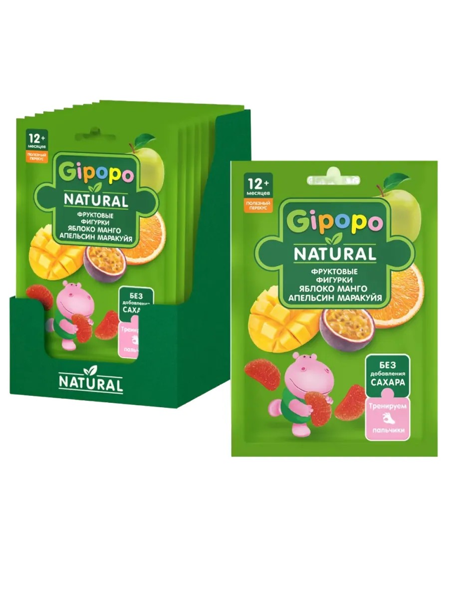 Фруктовые фигурки Gipopo — это вкусное и полезное лакомство, специально разработанное для малышей старше 12 месяцев. Сочетание натуральных фруктов — яблока, манго, апельсина и маракуйи — делает эти фигурки не только аппетитными, но и насыщенными витаминами и минералами, необходимыми для растущего организма.