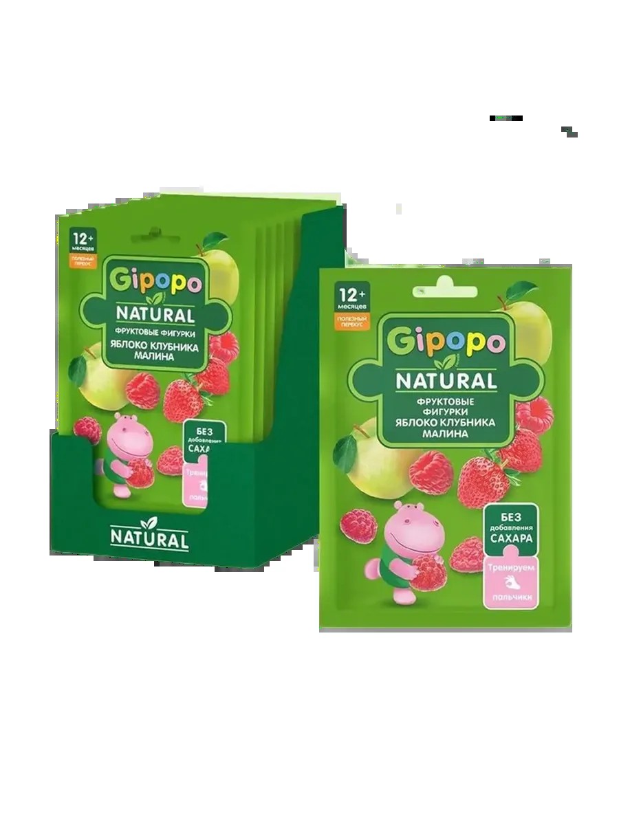 Фруктовые фигурки GIPOPO — это вкусное и полезное лакомство, созданное специально для малышей старше 12 месяцев. Эти маленькие фигурки сделаны из натуральных фруктов: яблока, клубники и малины, что делает их отличным источником витаминов и минералов. Продукт не содержит искусственных добавок, консервантов, красителей и ГМО, что обеспечивает его безопасность для детского питания.
