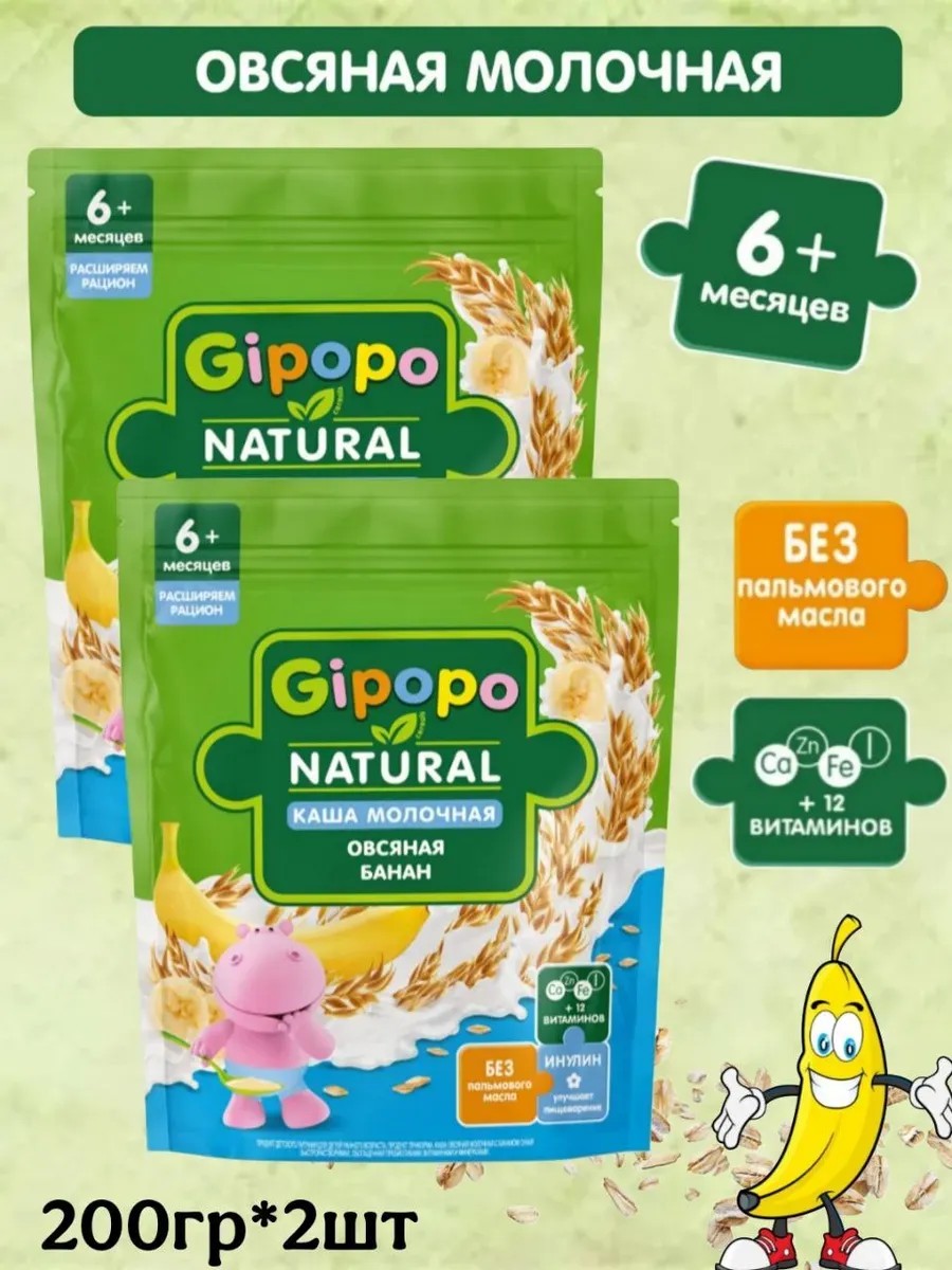 Молочная овсяная каша с фруктами GIPOPO РАСШИРЯЕМ РАЦИОН является источником белка и содержит всё необходимое для активного роста и развития малыша. Фруктовые молочные каши GIPOPO разнообразят рацион малыша и познакомят его с новыми вкусами и сочетаниями. Детские овсяные каши содержат белки для нормального развития мышц, 12 витаминов, а также железо, кальций, цинк и йод. Детские каши с фруктами GIPOPO имеют сбалансированный состав: - Источники белка и энергии - Витамины и минералы для активного роста - Инулин для комфортного пищеварения - Без пальмового масла - Без консервантов, красителей и ароматизаторов - Удобный формат упаковки с zip-локом Польза злаков: бережная паровая обработка сохраняет полезные свойства злаков, содержит 100% натуральные злаки. Попробуйте также жидкие каши и фруктовые пюре GIPOPO. Создано экспертами, одобрено мамами.