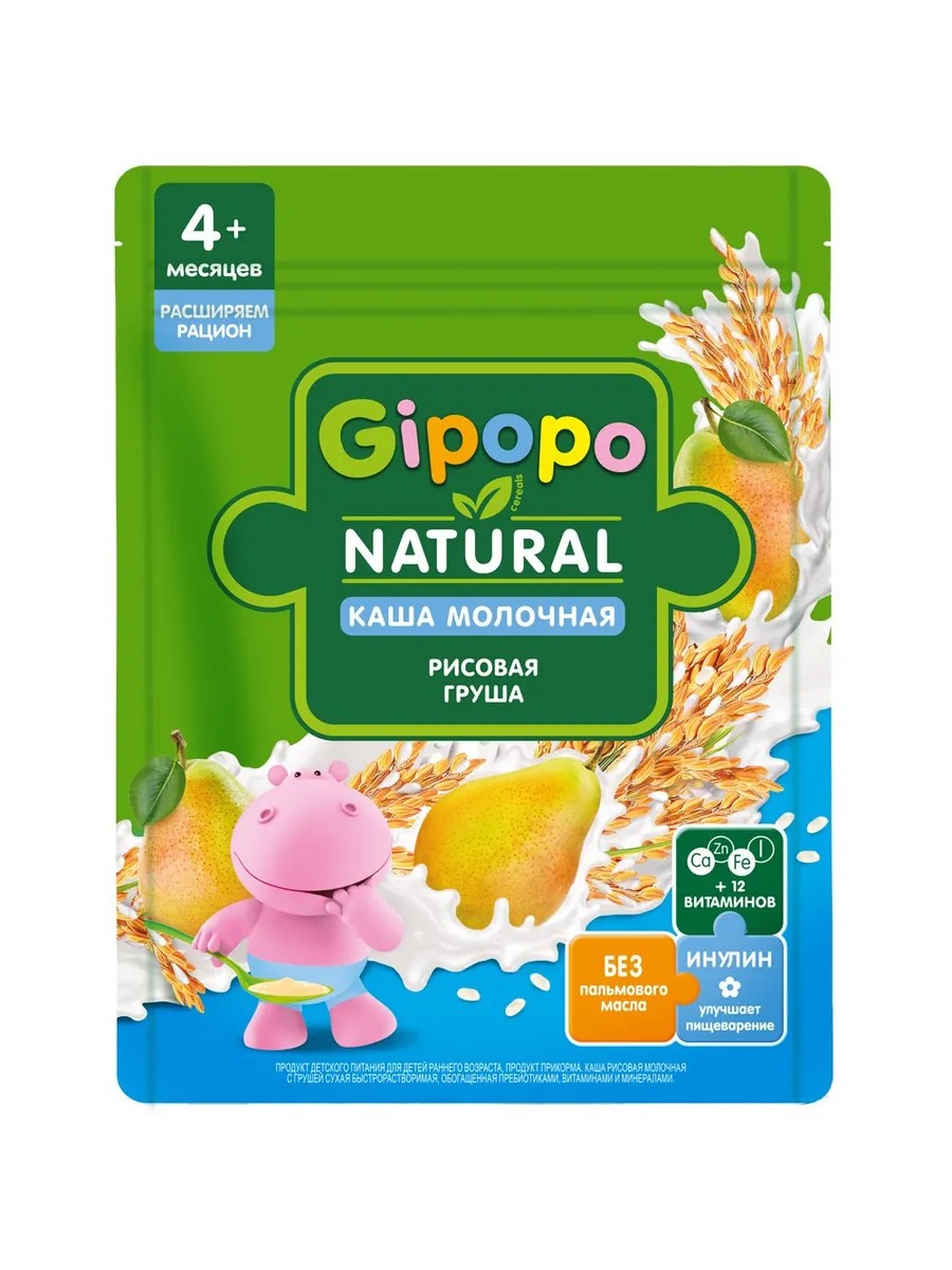 Первый прикорм – важное событие для родителей и малыша. Низкоаллергенная каша детская безмолочная рисовая GIPOPO разработана для правильного начала прикорма вашего малыша. Детские рисовые каши обеспечивают полноценное насыщение, легко усваиваются, не раздражая стенки кишечника Сложные углеводы дают ребенку необходимую энергию для нормального развития, а клетчатка стимулирует пищеварение. - Клинически доказано - гипоаллергенно - Без добавления сахара и соли - Без пальмового масла - Инулин для комфортного пищеварения - Удобный формат упаковки с zip-локом Польза злаков: бережная паровая обработка сохраняет полезные свойства злаков, содержит 100% натуральные злаки. Попробуйте также овощные и фруктовые пюре GIPOPO. Создано экспертами, одобрено мамами.
