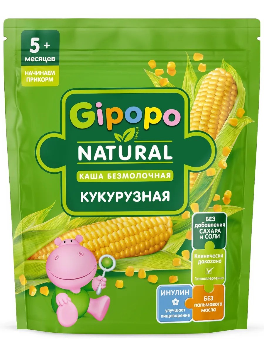 Первый прикорм важное событие для родителей и малыша. Низкоаллергенная каша детская безмолочная кукурузная каша Gipopo разработана для правильного начала прикорма вашего малыша. Кукурузная каша обеспечивает организм малыша качественными углеводами, необходимыми для его активной жизнедеятельности. Кукурузная каша является источником медленно усвояемых углеводов и надолго создаёт ощущение сытости у ребенка. Без добавления сахара и соли. Без пальмового масла. Инулин для комфортного пищеварения. Удобный формат упаковки с zip-локом. Польза злаков: бережная паровая обработка сохраняет полезные свойства злаков, содержит 100% натуральные злаки. Попробуйте также овощные и фруктовые пюре Gipopo. Создано экспертами, одобрено мамами.