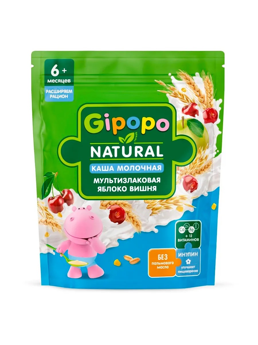 Каша детская молочная мультизлаковая Gipopo яблоко-вишня с 6 месяцев, 170г.