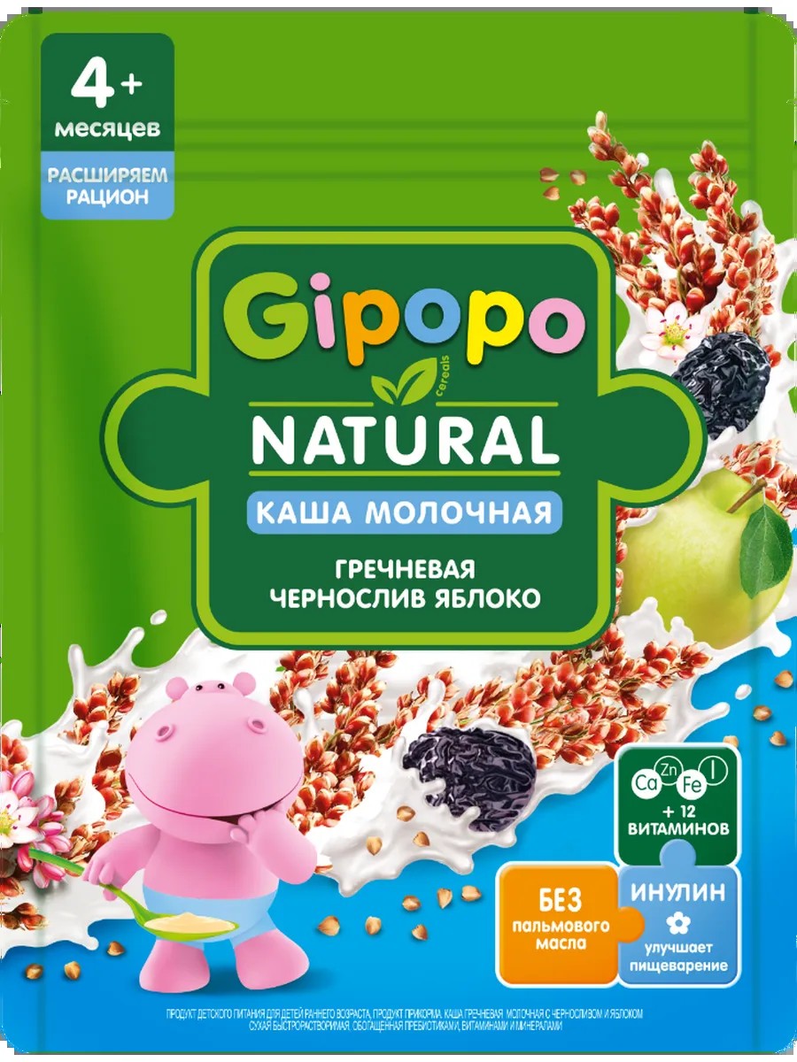 Молочная гречневая каша с фруктами GIPOPO РАСШИРЯЕМ РАЦИОН является источником белка и содержит всё необходимое для активного роста и развития малыша. Фруктовые молочные каши GIPOPO разнообразят рацион малыша и познакомят его с новыми вкусами и сочетаниями. Детские гречневые каши содержат белки для нормального развития мышц, 12 витаминов, а также железо, кальций, цинк и йод. Детские каши с фруктами GIPOPO имеют сбалансированный состав: - Источники белка и энергии - Витамины и минералы для активного роста - Инулин для комфортного пищеварения - Без пальмового масла - Без консервантов, красителей и ароматизаторов - Удобный формат упаковки с zip-локом Польза злаков: бережная паровая обработка сохраняет полезные свойства злаков, содержит 100% натуральные злаки. Попробуйте также жидкие каши и фруктовые пюре GIPOPO. Создано экспертами, одобрено мамами.