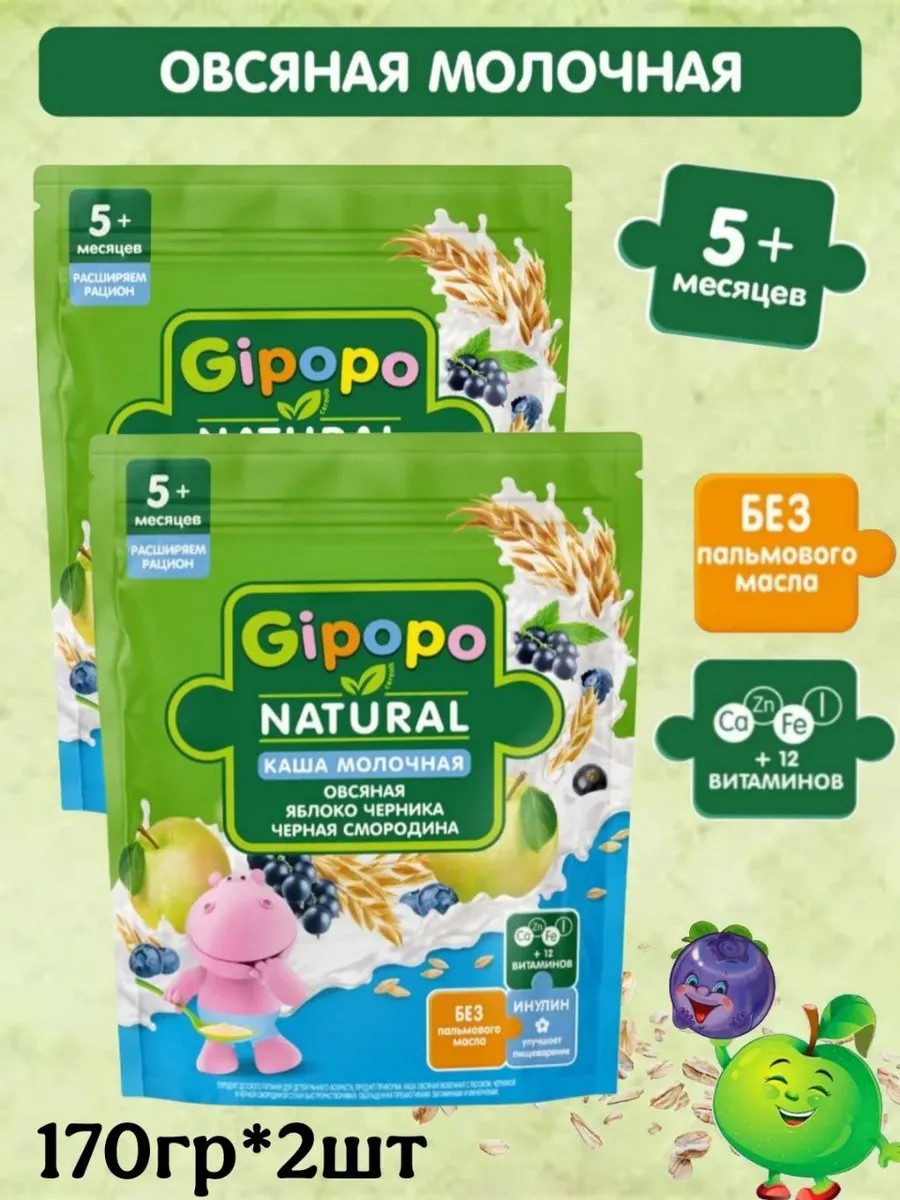 GIPOPO Milk Oatmeal with Fruits, EXPANDING THE DIETS, is a source of protein and contains everything necessary for baby's active growth and development. GIPOPO milk fruit porridges will diversify your baby's diet and introduce them to new flavors and combinations. Baby oatmeal contains protein for normal muscle development, 12 vitamins, as well as iron, calcium, zinc, and iodine. GIPOPO baby fruit porridges have a balanced composition: - Sources of protein and energy - Vitamins and minerals for active growth - Inulin for comfortable digestion - No palm oil - No preservatives, colors, or flavors - Convenient zip-lock packaging. The benefits of cereals: gentle steaming preserves the beneficial properties of cereals, contains 100% natural cereals. Also try GIPOPO liquid porridges and fruit purees. Created by experts, approved by moms.