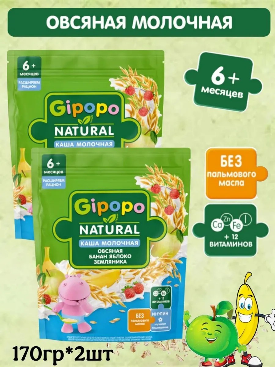 Молочная овсяная каша с фруктами GIPOPO РАСШИРЯЕМ РАЦИОН является источником белка и содержит всё необходимое для активного роста и развития малыша. Фруктовые молочные каши GIPOPO разнообразят рацион малыша и познакомят его с новыми вкусами и сочетаниями. Детские овсяные каши содержат белки для нормального развития мышц, 12 витаминов, а также железо, кальций, цинк и йод. Детские каши с фруктами GIPOPO имеют сбалансированный состав: - Источники белка и энергии - Витамины и минералы для активного роста - Инулин для комфортного пищеварения - Без пальмового масла - Без консервантов, красителей и ароматизаторов - Удобный формат упаковки с zip-локом Польза злаков: бережная паровая обработка сохраняет полезные свойства злаков, содержит 100% натуральные злаки. Попробуйте также жидкие каши и фруктовые пюре GIPOPO. Создано экспертами, одобрено мамами.