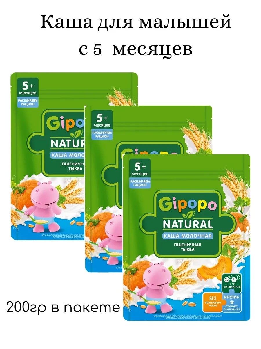 Каша сухая Gipopo Пшеничная молочная Тыква, 200г. Расширяем рацион. Продукт детского питания для детей раннего возраста с 5 месяцев, продукт прикорма. Каша молочная сухая быстрорастворимая. В составе содержит: витамины С, РР, Е, пантотеновая кислота, В6, В2, В1, А, фолиевая кислота, D3, биотин, В12, минеральные вещества кальций, железо, цинк, йод.
