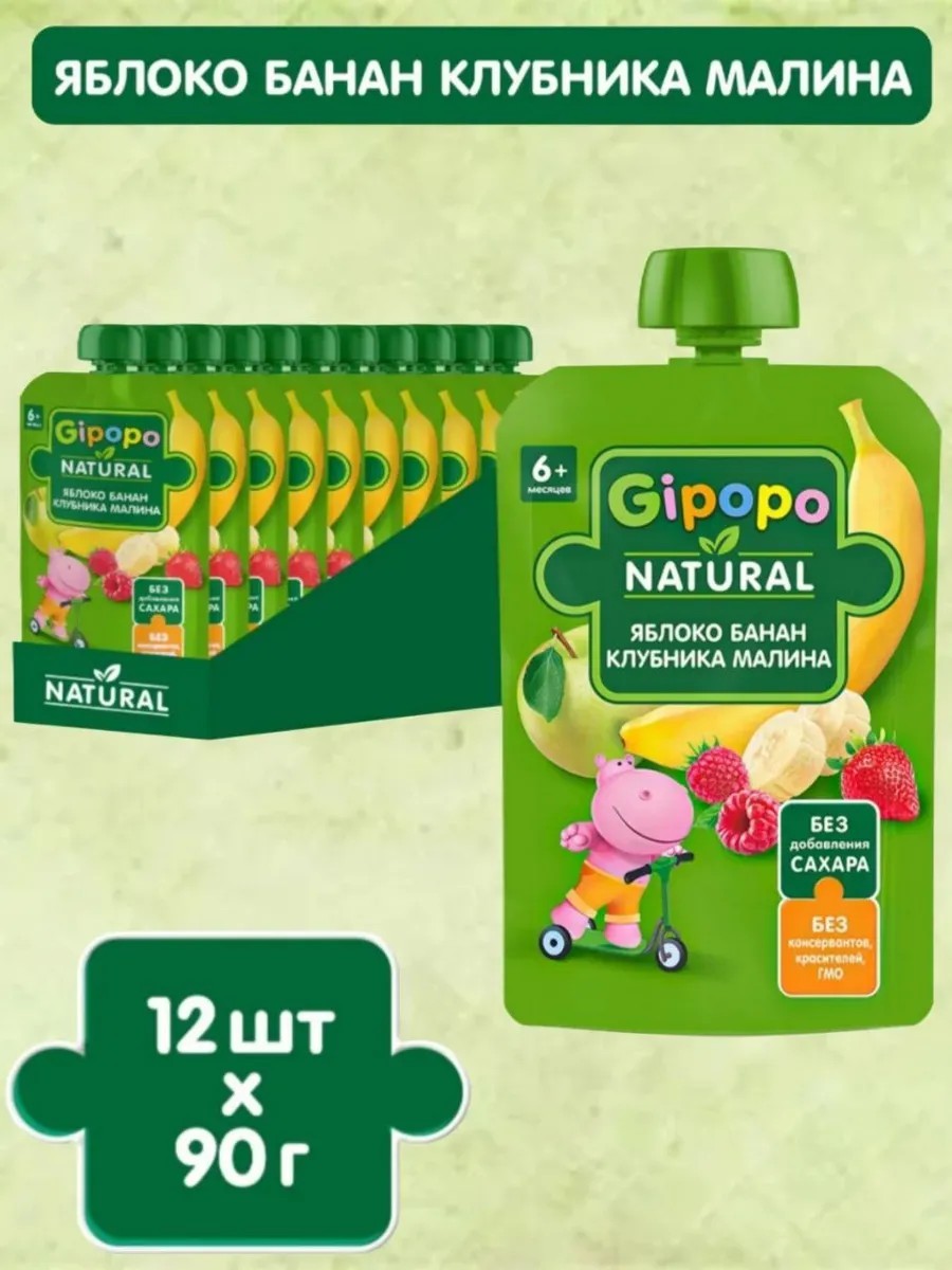 Детское пюре фруктово-ягодное GIPOPO в удобной упаковке - пауче подходят для питания малышей с 6 месяцев.