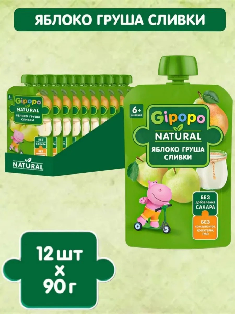 Детские фруктовые пюре с добавлением молочных компонентов GIPOPO в удобной упаковке - пауче подходят для питания малышей с 6 месяцев. В состав пюре из яблок и груш со сливками GIPOPO входят только натуральные пюре из фруктов и сливки из коровьего молока. Фрукты разнообразят рацион малыша, познакомят его с новыми вкусами, сливки добавят нежный вкус и сытность за счет молочного белка. Детские фруктовые пюре GIPOPO: - Без добавления сахара - Без консервантов, красителей, ГМО - Удобная мягкая упаковка-пауч Пюре в мягкой упаковке дополняет рацион в процессе взросления – удобно взять с собой. Создано экспертами, одобрено мамами.