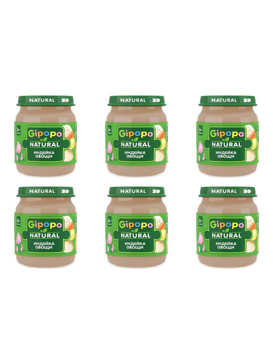 Мясорастительные пюре из индейки с овощами GIPOPO разнообразят повседневное питание малыша старше 6 месяцев и плавно подготовят его к более взрослой пище. Пюре мясное с овощами объединяет пользу натурального мяса и отборных овощей (цветной капусты, картофеля и морковки).Пюре мясное с овощами объединяет пользу натурального мяса и отборных овощей (цветной капусты, картофеля и морковки).Мясо индейки относится к низкокалорийным гипоаллергенным видам питания, идеально подходит для детского стола. Индейка является источником животного белка и легкоусвояемого железа для полноценного развития ребенка. Овощи богаты природными витаминами, минералами и клетчаткой.