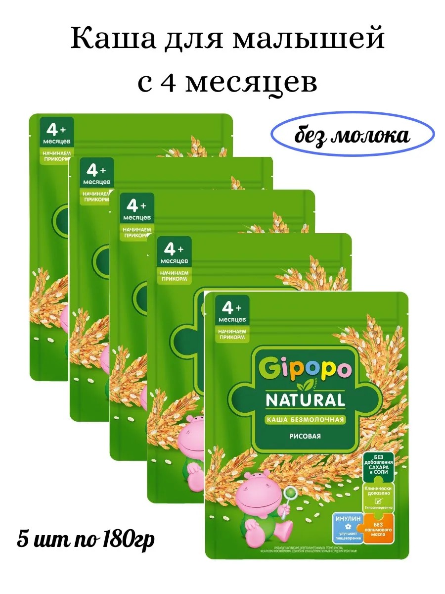 Каша сухая Gipopo безмолочная Рисовая, 180г. Начинаем прикорм. Продукт детского питания для детей раннего возраста с 4 месяцев, продукт первого прикорма. Каша рисовая низкоаллергенная безмолочная сухая быстрорастворимая, обогащённая пребиотиками.
