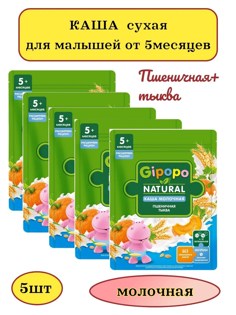 Молочная пшеничная каша с тыквой Gipopo является источником белка и содержит всё необходимое для активного роста и развития малыша. Молочные каши Gipopo с овощами разнообразят рацион малыша и познакомят его с новыми вкусами и сочетаниями с 5 месяцев. Детские каши Гипопо содержат белки для нормального развития мышц, 12 витаминов, а также железо, кальций, цинк и йод. Детские каши с овощами Gipopo имеют сбалансированный состав: - Источники белка и энергии - Витамины и минералы для активного роста - Инулин для комфортного пищеварения - Без пальмового масла - Без консервантов, красителей и ароматизаторов - Удобный формат упаковки с zip-локом Бережная паровая обработка сохраняет полезные свойства злаков, содержит 100% натуральные злаки.
