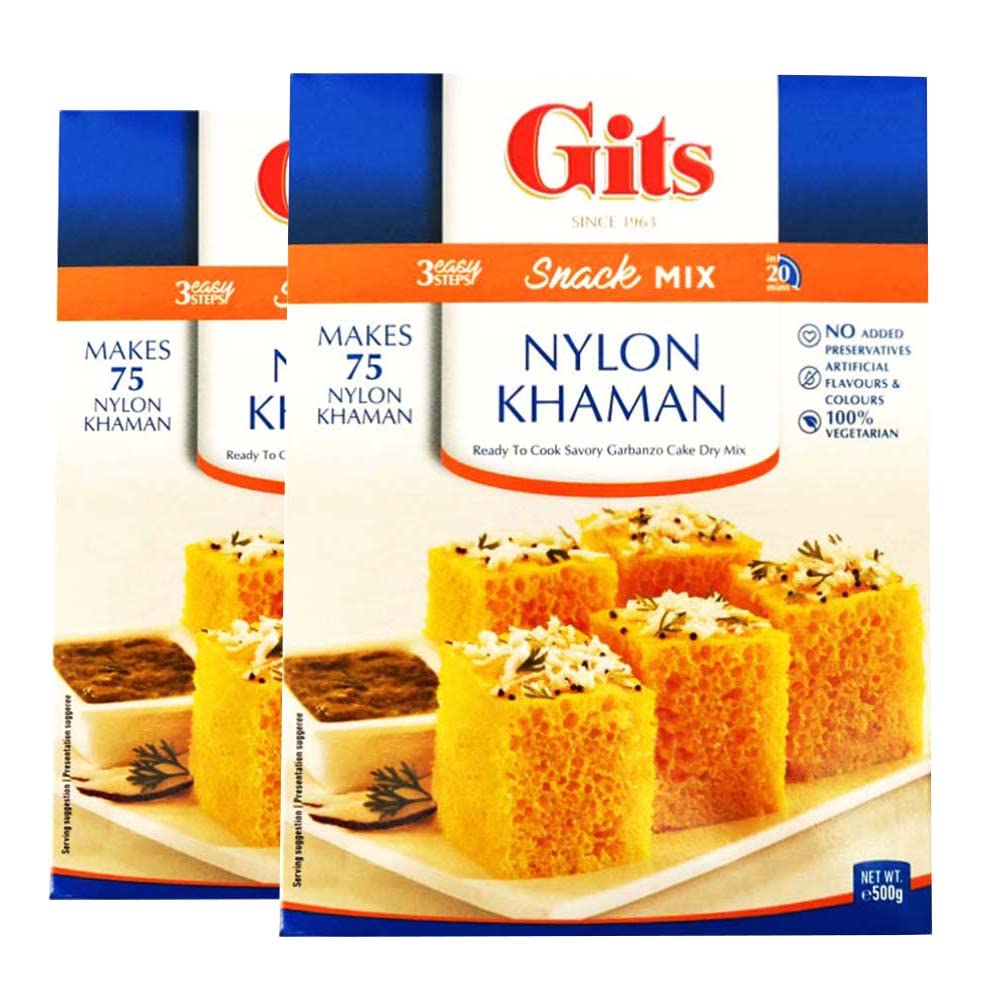 GITS Nylon Khaman 500G | Instant Snack Mix | Nylon Khaman Dhokla Mix | Traditional Indian Savory | Gujarati Snack | GITS Instant Pack | Indian Origin(Pack of 2)