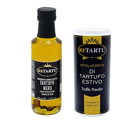 Set Truffe Noire: Poudre de Truffe d'été 100 gr et Condiment à base de huile d'olive extra vierge 100 ml