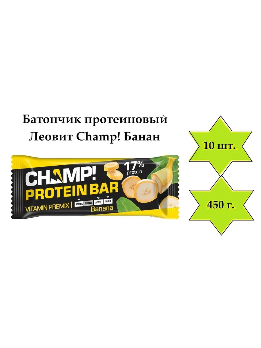 Батончики протеиновые Champ! с вкусом банана — это идеальный перекус для активных людей, заботящихся о своем здоровье и фигуре, а также для похудения. Протеиновые батончики станут отличным источником белка и энергии. Удобный формат позволяет взять их с собой на тренировку, в офис или в дорогу. Батончики Champ! с бананом — это вкусный и полезный способ поддержать свой организм в течение дня.