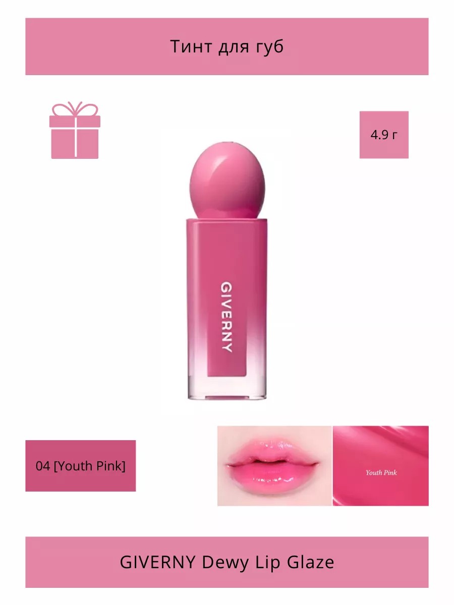 Глянцевый тинт GIVERNY Dewy Lip Glaze 04 Youth Pink 4.9г Корея.
