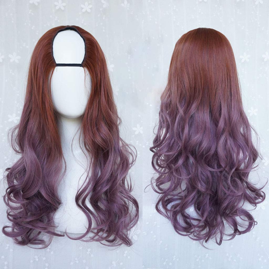 GJBXP Harajuku Fashion Long Wavy Curly Fluffy U-Shaped Wigs Heat Resistant Synthetic Fiber Ombre Mixed Gradient Dark Roots Hair for Girls 28inches/ 70cm M O