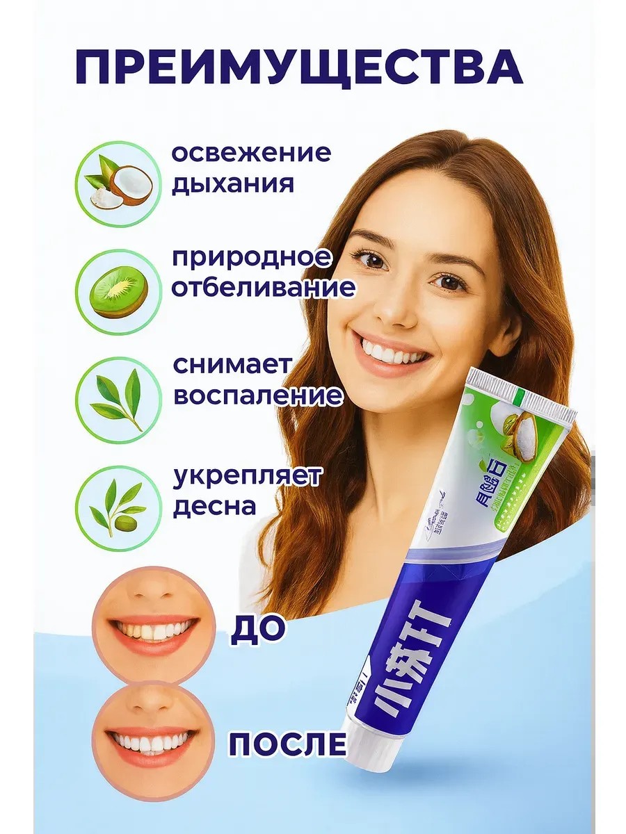 Зубная паста с киви и пищевой содой - это революционная формула, сочетающая мягкое отбеливание и комплексный уход.