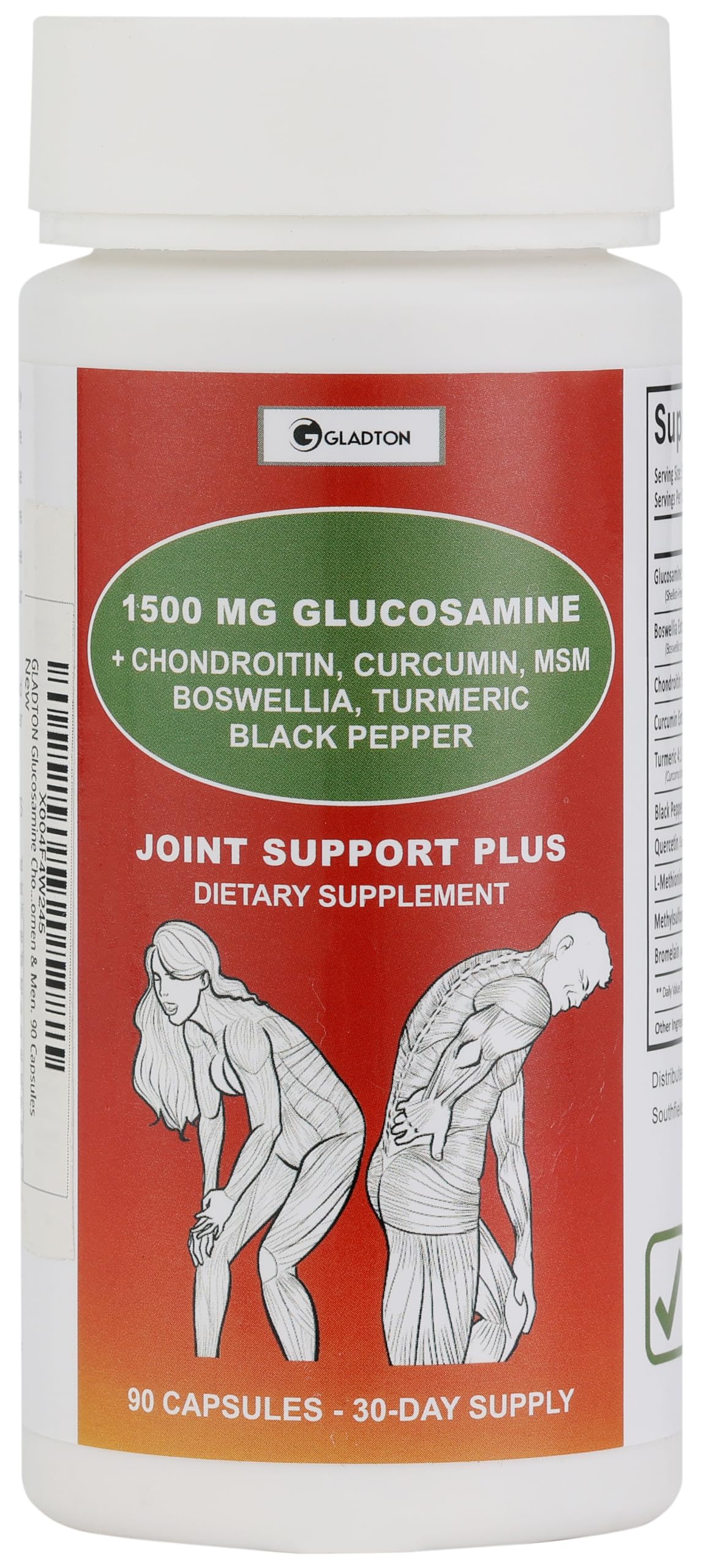 Gladton's joint support supplement supports joint health for men and women. OUR COMMITMENT TO EXCELLENCE Our Joint Support Supplement is crafted with precision and care to ensure exceptional quality and effectiveness. Every ingredient, process, and final output undergoes rigorous testing by expert scientists and a Quality Control team to deliver a product you can trust. POTENT, PURE We select only the finest ingredients, sourced from suppliers who adhere to the highest industry standards and cGMP guidelines. Each batch is tested during production to guarantee its purity and potency, ensuring you receive the full benefits of key joint-supporting nutrients. MICROBIOLOGICALLY SAFE To further ensure safety and quality, our raw materials and finished products are lab-tested for microbiological safety, making sure each supplement is free from harmful contaminants. With our carefully formulated blend of Glucosamine, Chondroitin, MSM, and other joint-supporting ingredients, you can feel confident in choosing a premium product for your active lifestyle. The different ways people write or say some of the ingredients used are Glucosamine glucosamin glucosomine glocosamine glucosamina glucosimine glocosimine glucosmane glucosamyn glucosamen glucosomane glucosamene glocosamene glucosamie glocosamie Chondroitin chondrotin condroitin chondritin chondriotin chondroiten condroiten condroitine condritin condriotin chondraten chondroutin chondroytin chondrioten chondroytine Turmeric tumeric tumericc turmaric turmerik turmarik termuric termaric turmric turmic tumerik turmerick turmeriq turmricq turmeuric curcumin curcuma kurkumin kourkumin cursumin curcomin curcuminne curcummine curcomine curcimun kercumin kurcumin boswellia boswelia boswilia boswella boswela boswelia bromelain bromelene bromelaine bromalin bromaline bromilain bromylain quercetin querctin queritin quercitin quercetine quercitine quersetin querceten quericetin querctine. However you write or pronounce it, we understand what you mean.Some ingredients are written or pronounced by some as boswellia boswelia boswilia boswella boswela boswelia bromelain bromelene bromelaine bromalin bromaline bromilain bromylain quercetin querctin queritin quercitin quercetine quercitine quersetin querceten quericetin querctine. However you write or pronounce it, we understand what you mean. The different ways people write or say some of the ingredients used are Glucosamine glucosamin glucosomine glocosamine glucosamina glucosimine glocosimine glucosmane glucosamyn glucosamen glucosomane glucosamene glocosamene glucosamie glocosamie Chondroitin chondrotin condroitin chondritin chondriotin chondroiten condroiten condroitine condritin condriotin chondraten chondroutin chondroytin chondrioten chondroytine Turmeric tumeric tumericc turmaric turmerik turmarik termuric termaric turmric turmic tumerik turmerick turmeriq turmricq turmeuric curcumin curcuma kurkumin kourkumin cursumin curcomin curcuminne curcummine curcomine curcimun kercumin kurcumin. PREMIUM QUALITY ingredients sourced globally and manufactured in a cGMP-certified facility inspected and certified by Intertek, a global third-party inspection company. Free from gluten, dairy, soy and sugar. Non-GMO. A bone joint health supplement for men and women that meets the highest quality. HOW TO USE: Take 3 capsules daily. Some people prefer to take them all at once, others prefer to space them out, for example, 1 capsule 3 times a day. You may try both ways to see what works best. Our joint health supplement contains glucosamine, chondroitin, turmeric, msm, boswellia, bromelain, quercetin, L-methionine and curcumin extracts and is formulated for fast absorption. THE JOINT SUPPORT BY GLADTON - STAY ACTIVE: The Gladton's joint supplement is both a men's joint supplement and women's joint supplement that promotes joint mobility, flexibility and movement essential for joint health. Some view it as joint vitamins that support joint health - muscle and joint supplements that support a healthy cartilage. SUPPORTS CARTILAGE HEALTH: Formulated with ingredients like Glocosamine, Chondroitin, Turmeric, Curcumin, Quercetin, Boswellia and more, to support healthy cartilage and overall joint function - a joint health supplement for joint health women can rely on and joint health men can count on. SUPPORTS JOINT FLEXIBILITY AND MOBILITY: This powerful blend helps maintain joint flexibility and mobility, supporting smooth movement in your knees, back, and hands. The best joint supplements are joint health supplement for men that are also joint health supplement for women. Ours is a joint supplement for men and joint supplement for women. THE GLADTON JOINT SUPPORT: Features Glucosamine, Chondroitin, MSM, and Turmeric to promote healthy joint movement, strength, and function for an active lifestyle. Our joint support supplement for women and men has the right joint health ingredients that support bones, knees and joints.