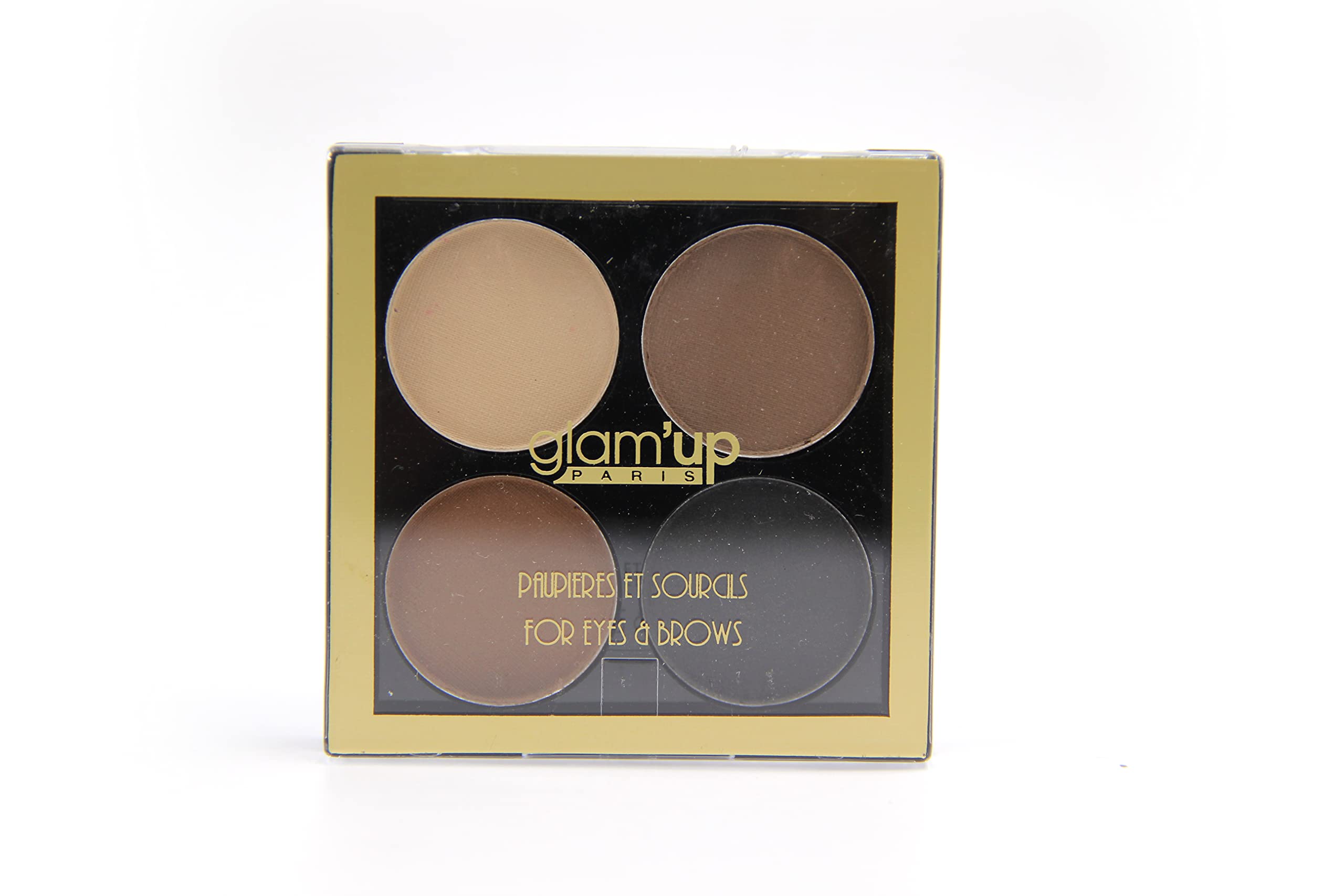 A 2-in-1 palette for nude eye makeup or eyebrow makeup. Its 4 eyeshadow shades can be combined as desired to create all kinds of nude looks: casual nude for daytime, smoky nude for an evening, or sophisticated nude for a professional meeting. Nude is endlessly versatile. INSTRUCTIONS 1. Apply the lightest color to the entire eyelid, from the lash line to the eyebrow. It serves as both a base for the other two eyeshadows and a highlighter. 2. Then apply the medium color to the entire mobile eyelid. 3. Using a fine or angled brush, draw a V with the darkest eyeshadow: one line that skims the lashes and the other that follows the crease of the eyelid. Fill in the inside of the "V". 4. Using a brush, make small circular motions to blend and blend the eyeshadows together. SAFETY WARNING Keep out of reach of children Glam'Up Paris. A velvety texture that guarantees intense color and a delicate finish. Nude shades come in an infinite variety. Casual nude for daytime, smoky nude for an evening, or sophisticated nude for a professional meeting. Its 4 eyeshadow shades can be combined as desired to create all kinds of nude looks. A 2-in-1 palette for nude eye makeup or eyebrow makeup. Une palette 2en1, pour des maquillages de paupières nude, ou pour le maquillage des sourcils. Ses 4 nuances de fard à paupières que l'on marie selon ses envies pour réaliser toutes sortes de looks nudes: nude casual pour la journée, nude smoky pour une soirée ou nude sophistiqué pour un rendez-vous professionnel. Le nude se décline à l'infini. MODE D'EMPLOI 1. Appliquez la couleur la plus claire sur l'ensemble de la paupière, du ras des cils jusqu'au sourcil. Elle sert à la fois de base pour les deux autres fards et d'illuminateur. 2. Posez ensuite la couleur moyenne sur l'ensemble de la paupière mobile. 3. Avec un pinceau fin ou biseauté, tracez un V avec le fard le plus foncé : une ligne qui rase les cils et l'autre qui suit le pli de la paupière. Remplissez l'intérieur du « V ». 4. A l'aide d'un pinceau, effectuez des petits mouvements circulaires pour estomper et mélanger les fards entre eux. AVERTISSEMENT DE SÛRETÉ Laisser hors de portée des enfants Glam'Up Paris. Texture velouté qui garantit une couleur intense et une finition délicate. Le nude se décline à l'infini. Nude casual pour la journée, nude smoky pour une soirée ou nude sophistiqué pour un rendez-vous professionnel. Ses 4 nuances de fard à paupières que l'on marie selon ses envies pour réaliser toutes sortes de looks nudes:. Une palette 2en1, pour des maquillages de paupières nude, ou pour le maquillage des sourcils.