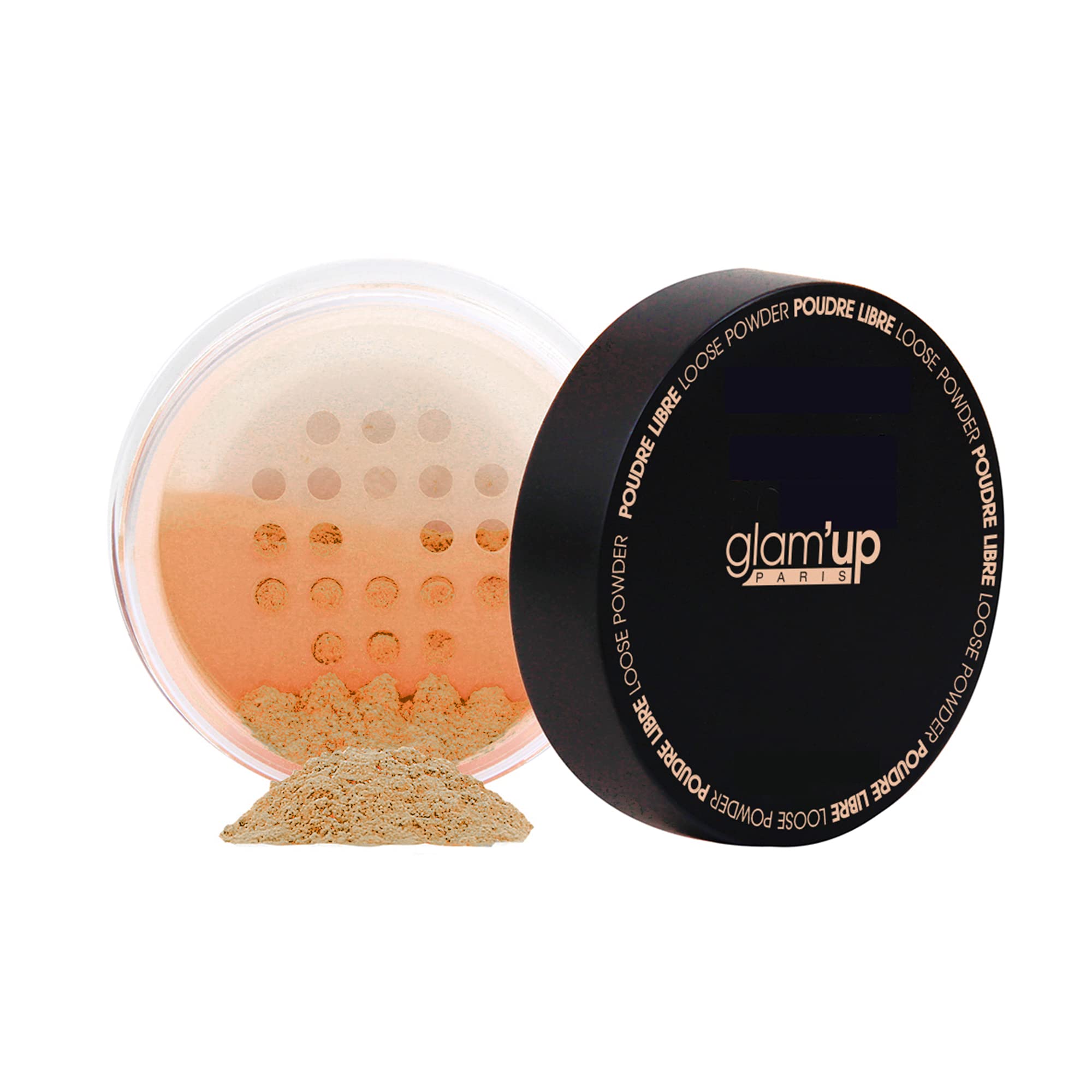 An essential step in makeup, Glam'Up loose powder enhances, unifies and mattifies the complexion. A loose powder that is easy to use thanks to its included powder puff. Suitable for all skin tones to create a long-lasting and airy complexion, while helping to smooth pores and fade wrinkles, and to set makeup throughout the day. Essential for oily skin, it fixes makeup and illuminates the face. Its airy texture leaves a velvety, light finish which preserves the light of the face. Suitable for all skin tones to create a long-lasting and airy complexion, while helping to smooth pores and fade wrinkles, and to set makeup throughout the day. APPLICATION TIPS For airy powdering, use a delicate brush. For more sophisticated makeup or on oily skin that requires more dullness, and whose enlarged pores need to be blurred, use the included powder puff: 1. Take a small amount of powder from the case with the powder puff. To keep your hand light, you can also take the powder into the lid into which you have previously poured a small quantity. 2. Then crush the powder in circular motions on the back or in the palm of the hand to refine the grain and remove excess. 3. Then gently press the puff onto the skin, starting from the center of the face and ending with the contours. Sweep off excess with a clean powder brush if necessary. DIRECTIONS FOR USE 1. Loose powder can be applied either over makeup to extend wear, or applied solo for an even complexion. 2. To do this, pick up the setting powder with a powder brush. Lightly tap off excess powder, then apply all over face or individual areas of the face. 3. Beauty enthusiasts with combination skin can use the powder only on the T-zone (forehead, bridge of nose, chin) to mattify it. SAFETY WARNING Leave out of reach of children Glam'Up Paris. Suitable for all skin tones to create a long-lasting, airy complexion, while helping to smooth pores and fade wrinkles, and set makeup throughout the day. Essential for oily skin, it sets makeup and illuminates the face. Its airy texture leaves a light, velvety finish that preserves the face's radiance. Suitable for all skin tones to create a long-lasting, airy complexion, while helping to smooth pores and fade wrinkles, and set makeup throughout the day. An easy-to-use loose powder thanks to its included puff. An essential makeup step, Glam'Up Paris loose powder enhances, evens out, and mattifies the complexion. Étape incontournable du maquillage, la poudre libre Glam'Up sublime, unifie et matifie le teint. Une poudre libre facile d'utilisation grâce à sa houppette incluse. Adaptée à toutes les carnations afin de créer un teint durable et aérien, tout en aidant à lisser les pores et estomper les rides, et à fixer le maquillage au long de la journée. Indispensable pour les peaux grasses, elle fixe le maquillage et illumine le visage. Sa texture aérienne laisse un fini velouté tout en légèreté qui préserve la lumière du visage. Adaptée à toutes les carnations afin de créer un teint durable et aérien, tout en aidant à lisser les pores et estomper les rides, et à fixer le maquillage au long de la journée. CONSEILS D'APPLICATION Pour un poudrage aérien utiliser un pinceau tout en délicatesse. Pour un maquillage plus sophistiqué ou sur une peau grasse qui nécessite plus de matité, et dont les pores dilatés ont besoin d'être floutés, utiliser la houppette incluse: 1. Prélevez une petite quantité de poudre dans le boîtier avec la houppette. Afin de garder la main légère, vous pouvez aussi prélever la poudre dans le couvercle dans lequel vous aurez préalablement versé une mini quantité. 2. Puis écrasez la poudre en mouvements circulaires sur le dos ou dans la paume de la main pour affiner le grain et ôter l'excès. 3. Pressez ensuite délicatement la houppette sur la peau en partant du centre du visage en finissant par les contours. Balayez l'excédent avec un pinceau poudre propre si necessaire. MODE D'EMPLOI 1. La poudre libre peut être appliquée soit sur le maquillage pour prolonger la tenue, soit appliquée en solo pour un teint uniforme. 2. Pour cela, ramasser la poudre de fixation avec un pinceau à poudre. Tapotez légèrement l'excédent de poudre, puis appliquez sur tout le visage ou sur des zones individuelles du visage. 3. Les amateurs de beauté à peau mixte peuvent utiliser la poudre uniquement sur la zone en T (front, pont du nez, menton) pour la matifier. AVERTISSEMENT DE SÛRETÉ Laisser hors de portée des enfants Glam'Up Paris. Adaptée à toutes les carnations afin de créer un teint durable et aérien, tout en aidant à lisser les pores et estomper les rides, et à fixer le maquillage au long de la journée. Indispensable pour les peaux grasses, elle fixe le maquillage et illumine le visage. Sa texture aérienne laisse un fini velouté tout en légèreté qui préserve la lumière du visage. Adaptée à toutes les carnations afin de créer un teint durable et aérien, tout en aidant à lisser les pores et estomper les rides, et à fixer le maquillage au long de la journée. Une poudre libre facile d'utilisation grâce à sa houppette incluse. Étape incontournable du maquillage, la poudre libre Glam'Up Paris sublime, unifie et matifie le teint.