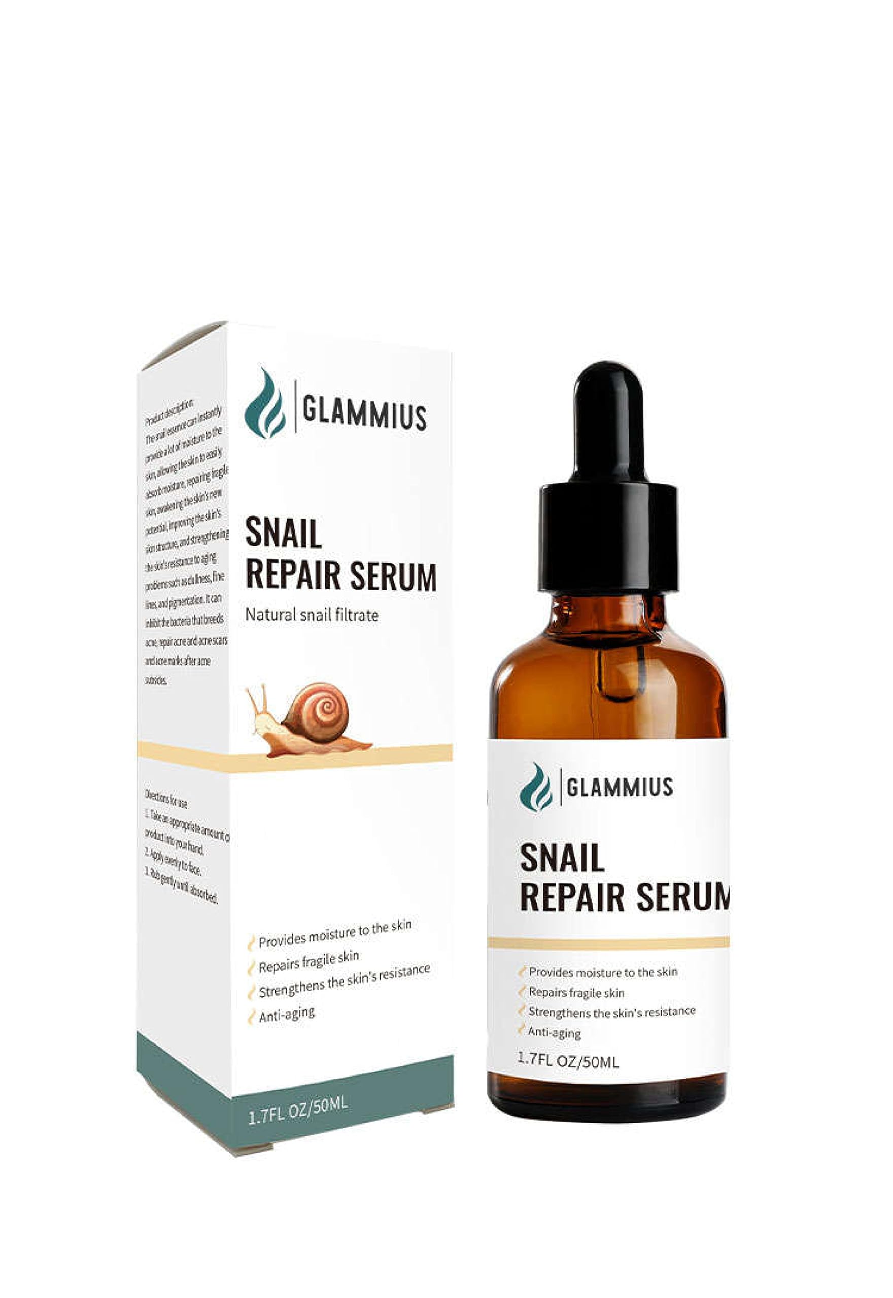 Glammius Snail Mucin Serum with snail filtrate, retinol and castor oil. For dull skin, damaged skin, wrinkles, with facelift effects and correct discoloration