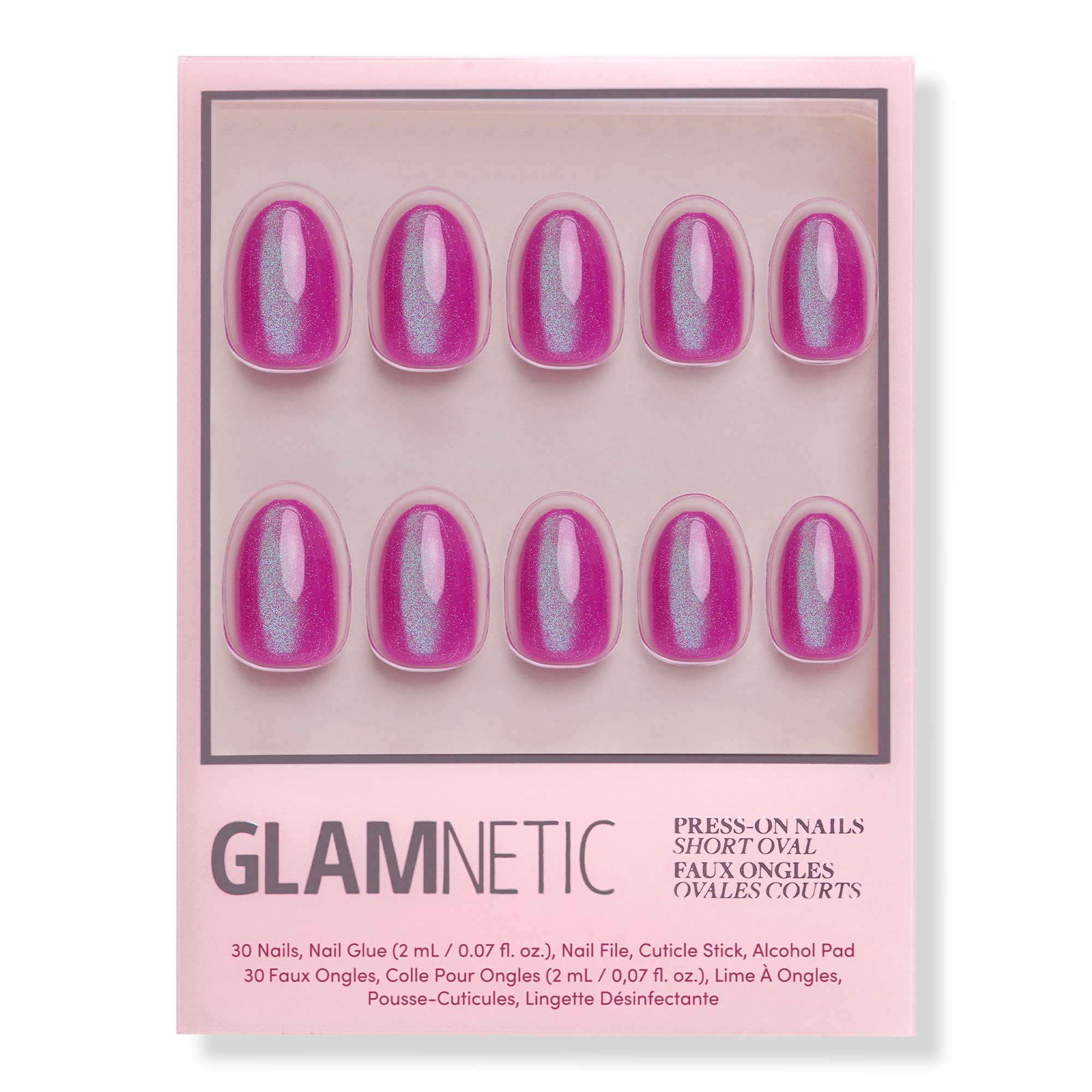 Step up your nail game with Glamnetic's Berry Fizz Press-On Nail Set. This dimensional style features an iridescent magenta hue with the most mesmerizing velvet metallic finish.