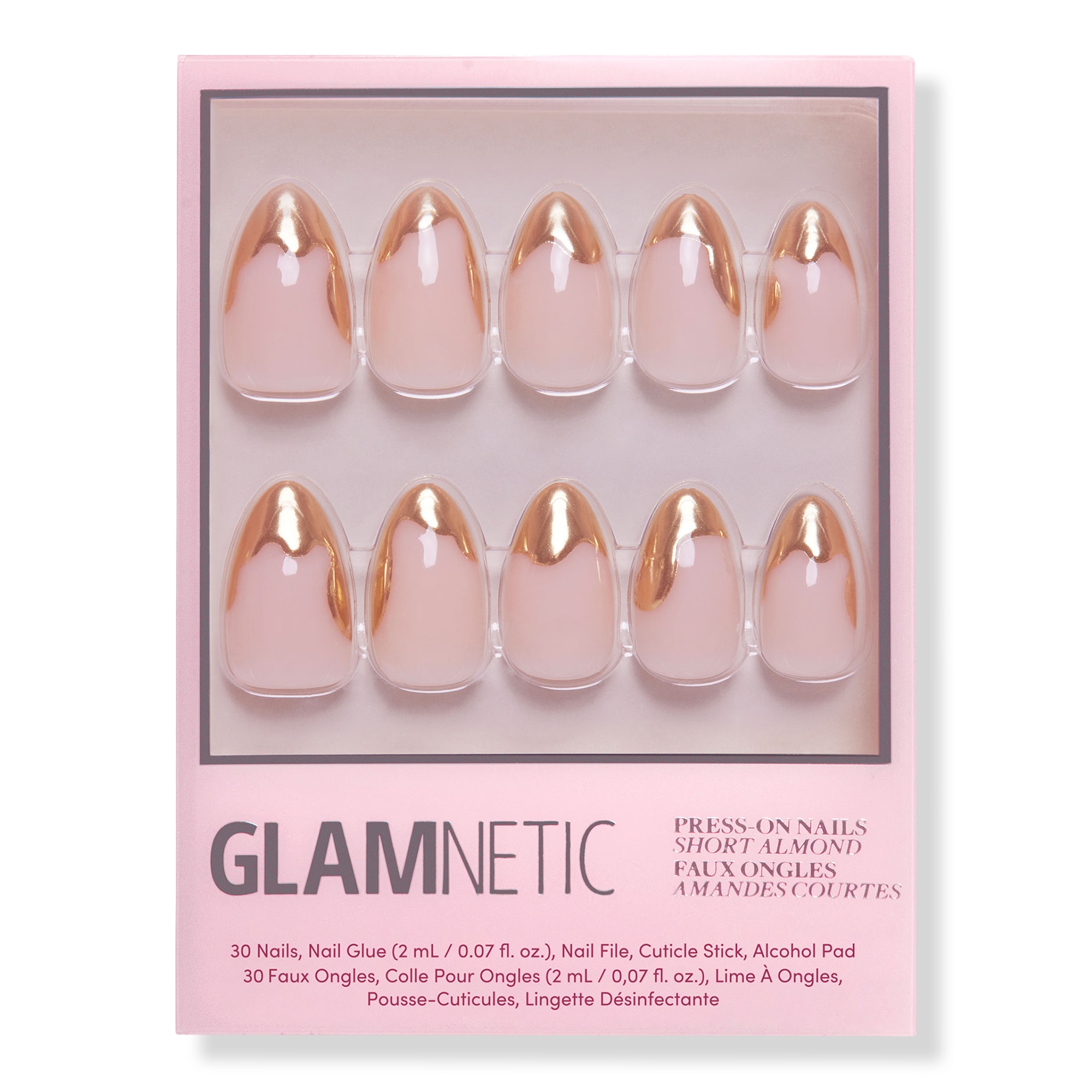 Get your most luxurious mani with the Golden Touch Nail Set! This trendy style features an abstract gold foil french tip design on a semi-transparent base.