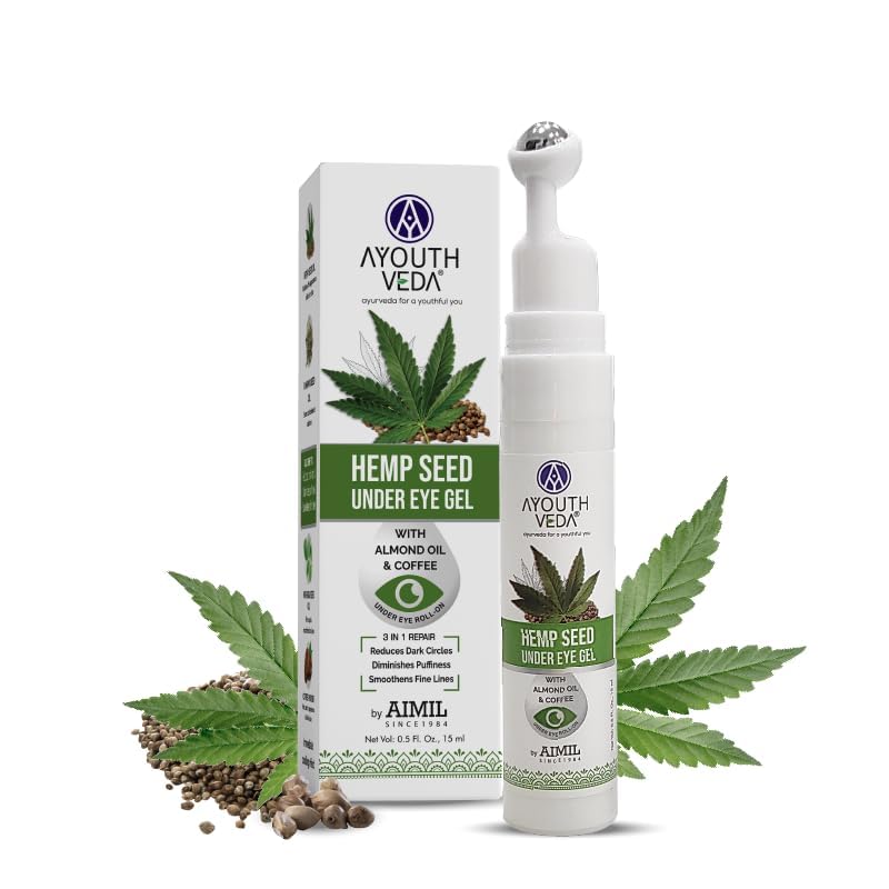 Glamzy Hemp Seed Under Eye Gel with Cooling Massage Roller For Puffy Eyes, Dark Circles, Wrinkles and Fine Lines With Hemp Seed Oil, Almond oil and Coffee (Pack of 1 15ml)
