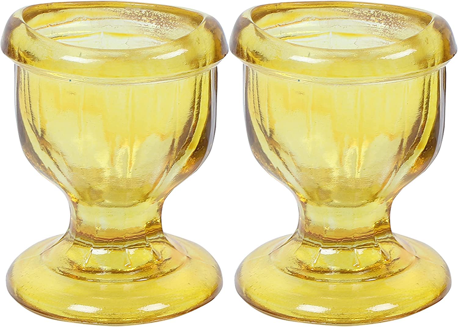 Glass Eye Wash Cup for Clean and Healthy Eyes | Soothing Relief from Allergens Irritants Makeup Dust Dry Eyes | Eye-Shaped Rim Snug Fit Set of 2 Yellow