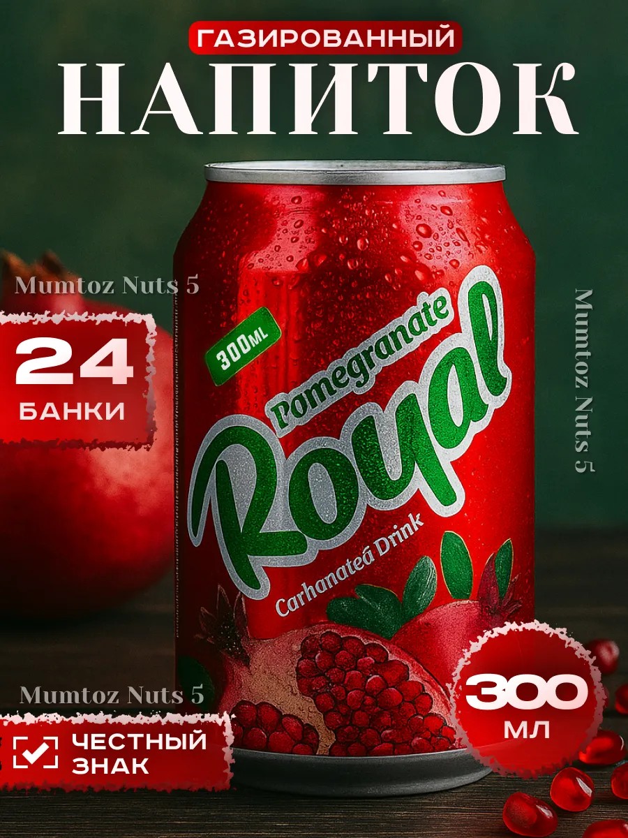 Газированный напиток с гранатовым ароматом станет отличным выбором для любого времени. Вкус royal в каждой банке 300 мл придаст свежести и элегантности. Этот освежающий напиток идеально подходит для встречи с друзьями, добавляя уникальный гранатовый аромат в каждую беседу. Напиток в кейсе из 24 штук легко взять с собой на пикник или праздник. Гранатовый вкус и аромат сделают ваше времяпрепровождение ярче, а каждый глоток порадует и освежит. С этим газированным напитком ваше время с друзьями станет незабываемым!