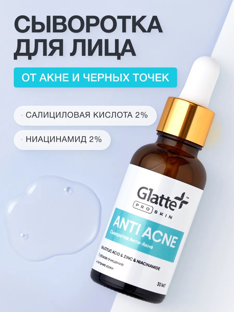Ищете эффективное средство для борьбы с прыщами и акне на лице? Представляем вам сыворотку для лица анти акне от Glatte - идеальное решение для вашей проблемной кожи!