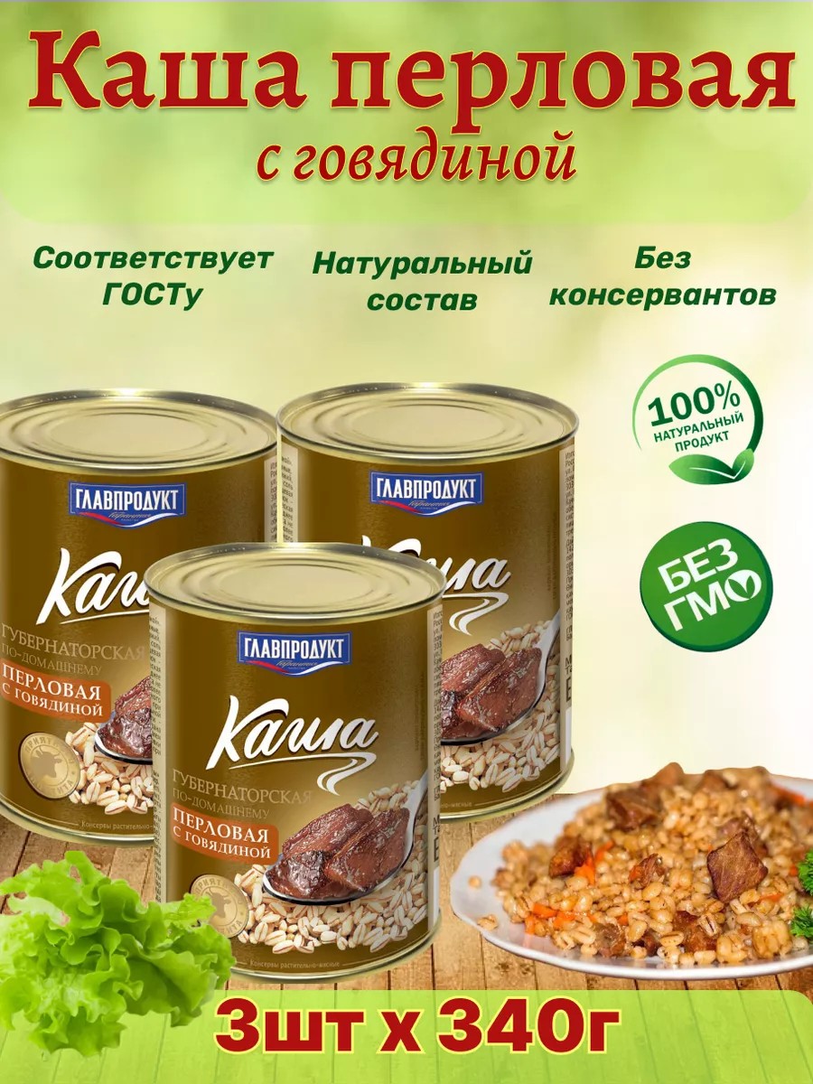 Перловая каша с говядиной Главпродукт - это натуральный продукт отличного качества. Консервы «Главпродукт» изготавливаются только из натуральных продуктов, без использования консервантов, красителей, искусственных добавок и ГМО. Гарантия качества, никаких подделок!