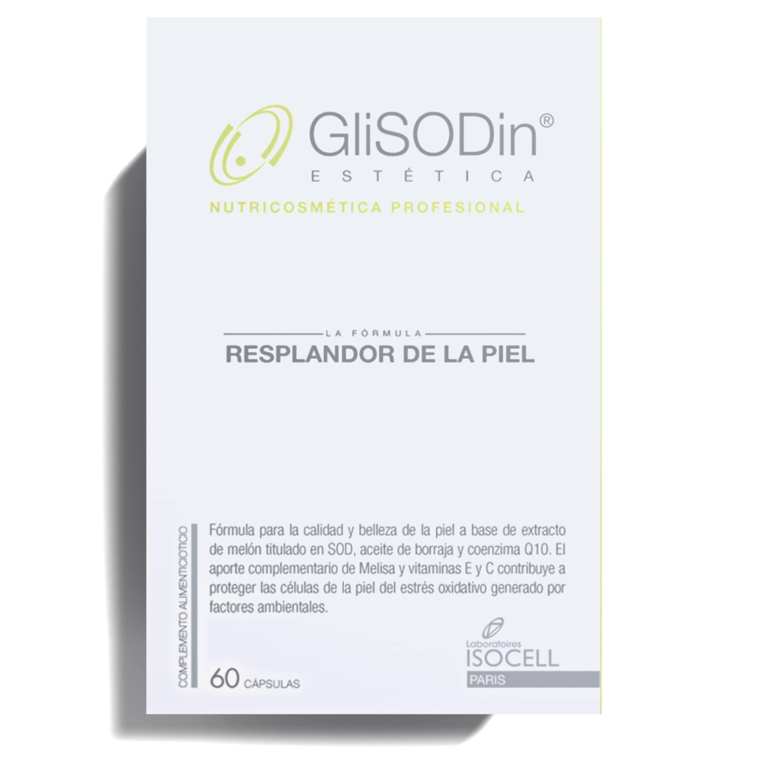 DESCRIPTION DU PRODUIT DESCRIPTION DU PRODUIT Los suplementos GliSODin Resplandor de la Piel ayudan a iluminar rápidamente la tez de la piel y a unificar su tono. Formulado con Melon SOD - complejo de gliadina, con antioxidantes protectores y agentes activos unificadores. [1] Goldberg, L. D., Crysler, C. (2014). A single center, pilot, double-blinded, randomized, comparative, prospective clinicwith tazarotene 0.1 cream alone and in combination with glisodin skin nutrients advanced A. Clinical, Cosmetic and Investigational Dermatology, 7, 139– 144. https: www.ncbi.nlm.nih.gov pubmed 24872715 [2] Goldberg, C., Gauci, J. (2016). Abstract: The Efficacy of Two Melon-Derived Superoxide Dismutase Wheat Gliadin Oral Formulae in the Treatment of Facial Skin Hyperpigmentation and Erythema. Plastic and Reconstructive Surgery - Global Open, 4, 25–26. https: doi.org 10.1097 01.GOX.0000511256.60478.59 INGRÉDIENTS GliSODin (maltodextrine, gliadine, extrait de fruit de melon), Actifs protecteurs, Actifs anti-taches (formulation exacte non publiée) AVERTISSEMENT DE SÉCURITÉ Consulte a un profesional de la salud antes de usarlo si está tomando medicamentos para la presión arterial, si está embarazada o amamantando, o si está tomando algún medicamento. No lo use si el sello está roto. Mantener fuera del alcance de los niños. Voir plusAN ADVANCED BRIGHTENING FORMULA THAT HELPS CORRECT SKIN TONE while enhancing your skin's natural radiance.GliSODin Éclat de la peau– Complément cliniquement prouvé, réduit taches et teint irrégulier, avec GliSODin et actifs protecteurs – 60 gélulesDESCRIPTION DU PRODUIT DESCRIPTION DU PRODUIT Los suplementos GliSODin Resplandor de la Piel ayudan a iluminar rápidamente la tez de la piel y a unificar su tono. Formulado con Melon SOD - complejo de gliadina, con antioxidantes protectores y agentes activos unificadores. [1] Goldberg, L. D., Crysler, C. (2014). A single center, pilot, double-blinded, randomized, comparative, prospective clinicwith tazarotene 0.1 cream alone and in combination with glisodin skin nutrients advanced A. Clinical, Cosmetic and Investigational Dermatology, 7, 139– 144. https: www.ncbi.nlm.nih.gov pubmed 24872715 [2] Goldberg, C., Gauci, J. (2016). Abstract: The Efficacy of Two Melon-Derived Superoxide Dismutase Wheat Gliadin Oral Formulae in the Treatment of Facial Skin Hyperpigmentation and Erythema. Plastic and Reconstructive Surgery - Global Open, 4, 25–26. https: doi.org 10.1097 01.GOX.0000511256.60478.59 INGRÉDIENTS GliSODin (maltodextrine, gliadine, extrait de fruit de melon), Actifs protecteurs, Actifs anti-taches (formulation exacte non publiée) AVERTISSEMENT DE SÉCURITÉ Consulte a un profesional de la salud antes de usarlo si está tomando medicamentos para la presión arterial, si está embarazada o amamantando, o si está tomando algún medicamento. No lo use si el sello está roto. Mantener fuera del alcance de los niños. Voir plusUNA FÓRMULA ILUMINADORA AVANZADA QUE AYUDA A CORREGIR EL TONO DE LA PIEL mientras mejora el brillo natural de su piel.