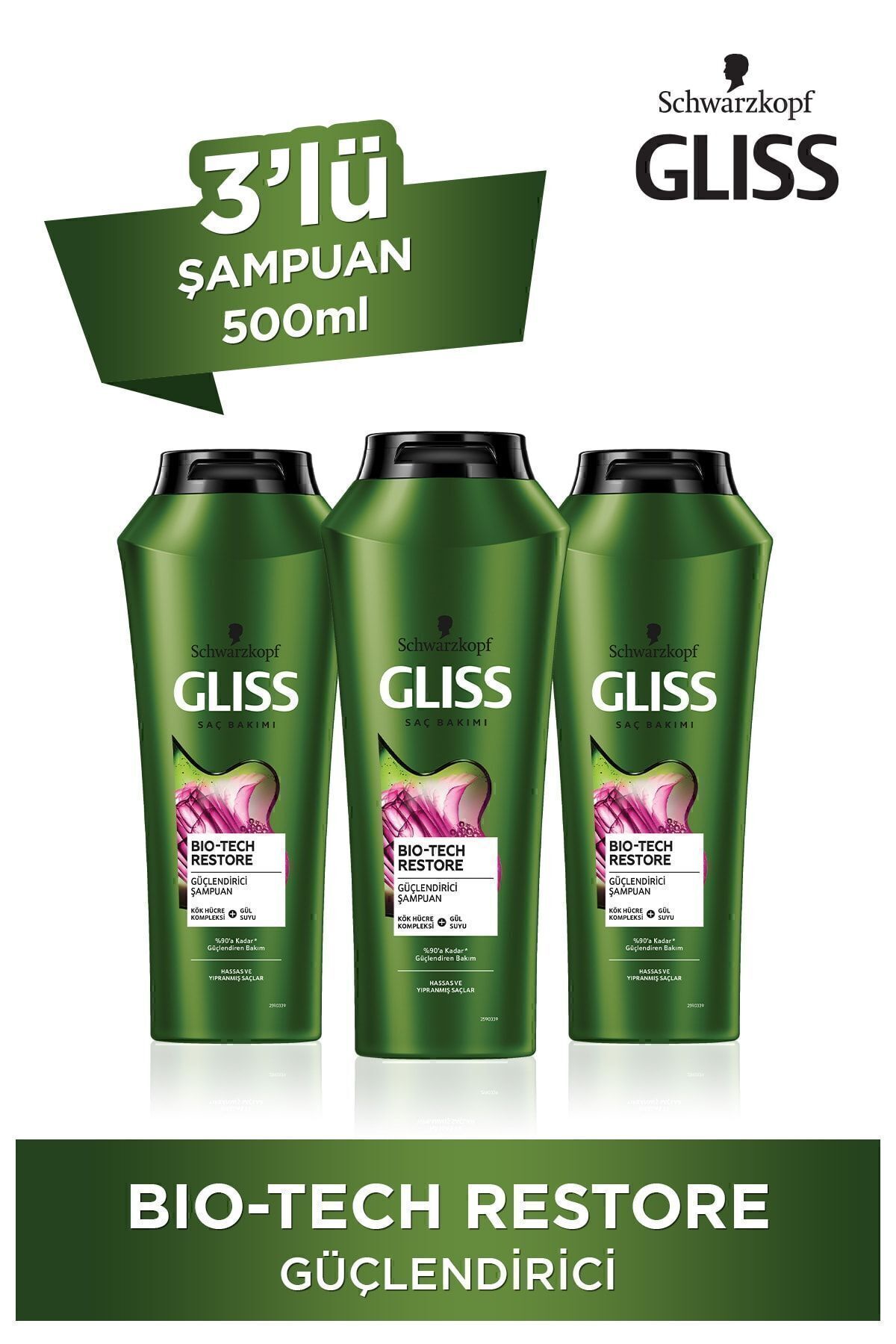 Gliss Bio-tech Restore Strengthening Shampoo - With Stem Cell Complex and Rose Water 500 ml X 3 Pcs