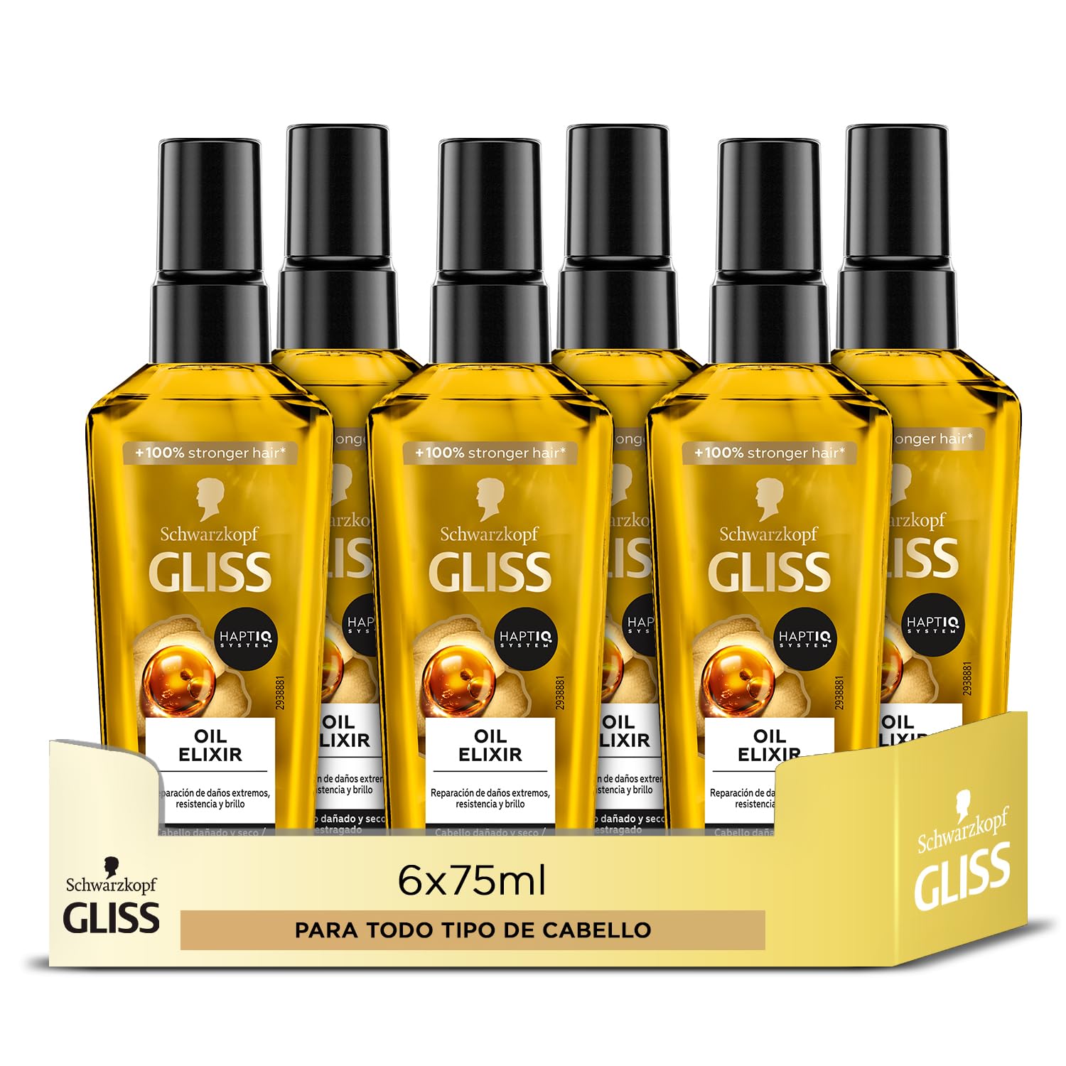 Gliss Huile Traitement Sublimateur Oil Elixir - Tous types de cheveux - 6 unités de 75 ml (450 ml) - Nutrition, douceur et brillance - Embellit les cheveux sans graissage