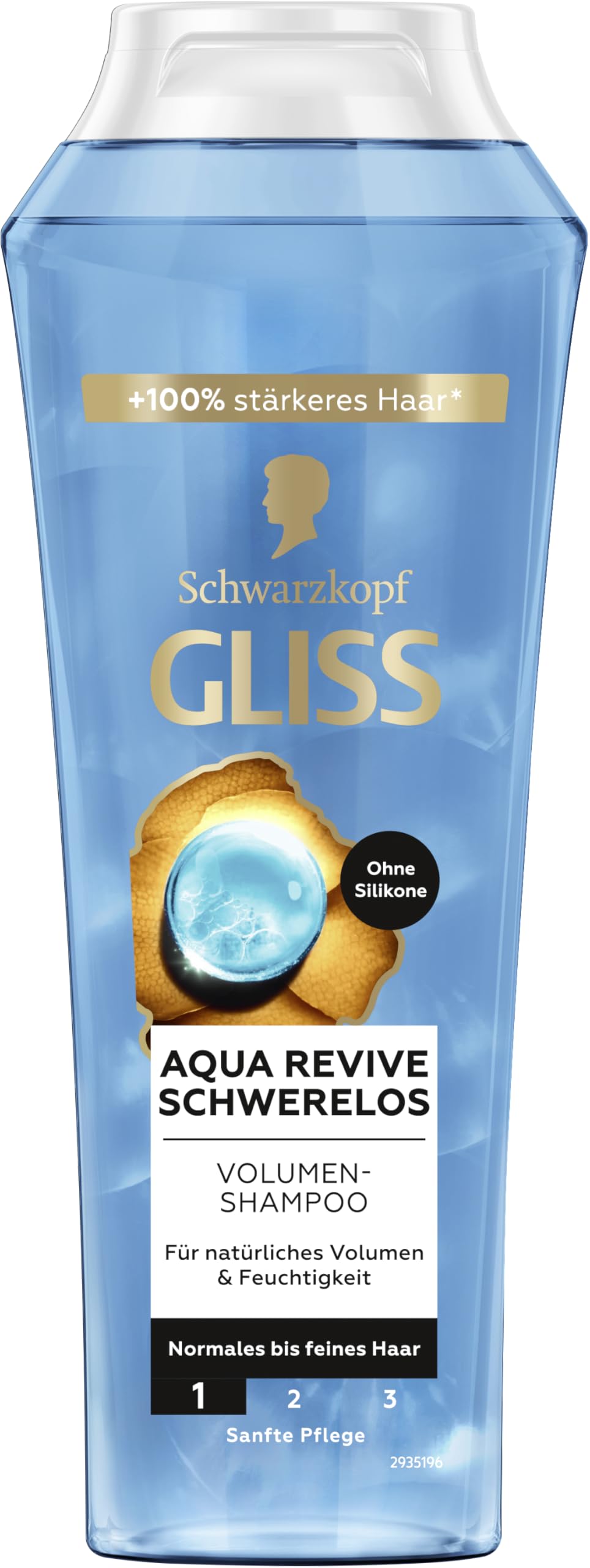 Gliss Aqua Revive Shampoo - For an extra dose of hydration Is your hair sometimes dry and limp? Then it needs an extra dose of hydration for healthy shine and a silky, lightweight feel. The Aqua Revive line with hyaluronic acid complex and seaweed provides intense care for a hydrated hair feel. This moisturizing shampoo contains no artificial colors, is lightweight, and suitable for daily use. The bottle is made from 97 recycled plastic, and Gliss shampoo is made with 90 naturally derived ingredients . Be Smarter. Save Water. Recycled A combination of premium hair actives and natural essences forms the basis of all Gliss formulas. They are tailored to the specific needs of your hair and ensure visibly improved repair and quality. Product Benefits in Detail: Gentle cleansing without weighing hair down. Suitable for everyday use. Shiny, healthy-looking hair. For a hydrated feel. Directions for use: Gently distribute through wet hair. Rinse thoroughly and apply regularly. Water included. INGREDIENTS Aqua (Water, Water), Sodium Laureth Sulfate, Cocamidopropyl Betaine, PEG-7 Glyceryl Cocoate, Sodium Chloride, Disodium Cocoamphodiacetate, Dimethylsilanol Hyaluronate, Laminaria Saccharin Extract, Panthenol, Hydrolyzed Keratin, Glycerin, Prunus Arus (Apricot) Seed Oil. (Pricicot) Kernel Oil Citric Acid Sodium Benzoate Sodium Hydroxide Propylene Glycol Phenoxyethanol Potassium Sorbate Polyquaternium-10 Linalool Benzyl Alcohol Parfum (Fragrance) Benzylate Trideceth-5 PEG-120 Methyl Glucose Dioleate PEG-40 Hydrogenated Castor Oil Amodimethicone Morpholinomethyl Silsesquioxane Copolymer DIRECTIONS Gently apply the shampoo to wet hair, then rinse thoroughly. Use regularly for hair care. See moreEasy to use: Gently apply the shampoo to wet hair, then rinse thoroughly. Use regularly for hair care. Sustainability: The bottle of Aqua Revive shampoo for women is made from 97 recycled plastic 90 of the ingredients are of natural origin. Hyaluronic Acid and Seaweed Complex: The nourishing formula of this shampoo provides intense care for a hydrated hair feel. Result: Gliss shampoo offers gentle cleansing for shiny, healthy-looking hair without weighing it down, making it suitable for everyday use. Aqua Revive: Gliss Aqua Revive moisturizing shampoo for normal to dry hair provides extra care, healthy shine, and a silky, soft, and lightweight feel.Schwarzkopf Gliss Kur Shampooing Aqua Revive (250 ml), le shampooing pour cheveux offre une dose supplémentaire d'hydratation et de brillance saine, shampooing hydratant pour cheveux normaux à secsDESCRIPTION DU PRODUIT DESCRIPTION DU PRODUIT Shampooing Gliss Aqua Revive - Pour une dose supplémentaire d'hydratation Vos cheveux sont de temps en temps secs et pas souples ? Ensuite, il faut une dose supplémentaire d'hydratation pour une brillance saine et une sensation soyeuse et légère. La ligne Aqua Revive au complexe hyaluronique et à l'algue marine apporte un soin intense pour une sensation de cheveux hydratée. Le shampooing hydratant ne contient pas de colorants artificiels, il ne pèse pas et est adapté pour un usage quotidien. Le corps de la bouteille est composé à 97 de plastique recyclé et le shampooing Gliss est composé à 90 d'ingrédients d'origine naturelle . Be Smarter. Save Water. Recyclé Une combinaison d'actifs capillaires de qualité supérieure et d'essences naturelles est la base de toutes les formules Gliss. Ils sont adaptés aux besoins spécifiques des cheveux et assurent une réparation et une qualité visiblement améliorée. Les avantages du produit en détail : Nettoyage en douceur, sans alourdir. Convient pour tous les jours. Cheveux brillants et sains. Pour une sensation de cheveux hydratée. Mode d'emploi : répartir doucement sur cheveux humides. Bien rincer, appliquer régulièrement. Eau incluse. INGRÉDIENTS Aqua (eau, eau), laureth sulfate de sodium, cocamidopropyle, bétaine, PEG-7, glyceryl cocoate, chlorure de sodium, disodium cocoamphodiacétate, diméthylsilanol hyaluronate, extrait de laminaria saccharine, panthénol, kératine hydrolysée, glycérine, prunus arus. Méniaca (A). pricot) Huile de noyau acide citrique benzoate de sodium hydroxyde de sodium propylène glycol phénoxyéthanol sorbate de potassium polyquaternium 10 linalool alcool benzylique parfum (fragrance) benzylate trideceth-5 PEG-120 Methyl Glul COSME Dioleate . PEG-40 Hydrogenated Castor Oil Amodimethicone Morpholinomethyl Silsesquioxane Copolymer MODE D'EMPLOI Étalez doucement le shampooing sur cheveux humides, puis rincez abondamment. Utiliser régulièrement pour le soin des cheveux. Voir plusFacile à utiliser : étalez doucement le shampooing sur cheveux humides, puis rincez abondamment, appliquez régulièrement pour le soin des cheveux. Durabilité : le corps de la bouteille du shampooing Aqua Revive pour femme est composé de 97 de plastique recyclé 90 des ingrédients sont d'origine naturelle. Complexe Hyaluronique et Algues Marines : le shampooing à formule nourrissante apporte un soin intense pour une sensation de cheveux hydratée. Résultat : le shampooing Gliss offre un nettoyage en douceur pour des cheveux brillants et sains, sans les alourdir, adapté pour tous les jours. Aqua Revive : le shampooing hydratant Gliss Aqua Revive pour cheveux normaux à secs apporte un soin supplémentaire, une brillance saine et une sensation soyeuse, douce et légère.
