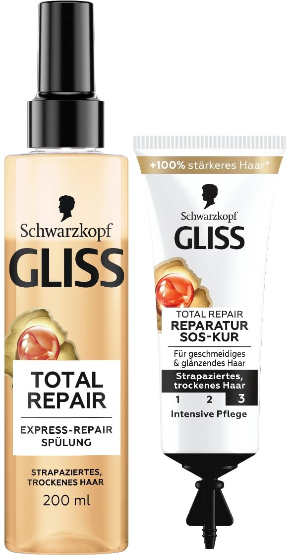 Gliss Kur Gliss - Express Total Repair Conditioner (200 ml) - Instant detangling and protection against hair breakage - Heat protection and SOS - Total Repair Treatment (15 ml) with