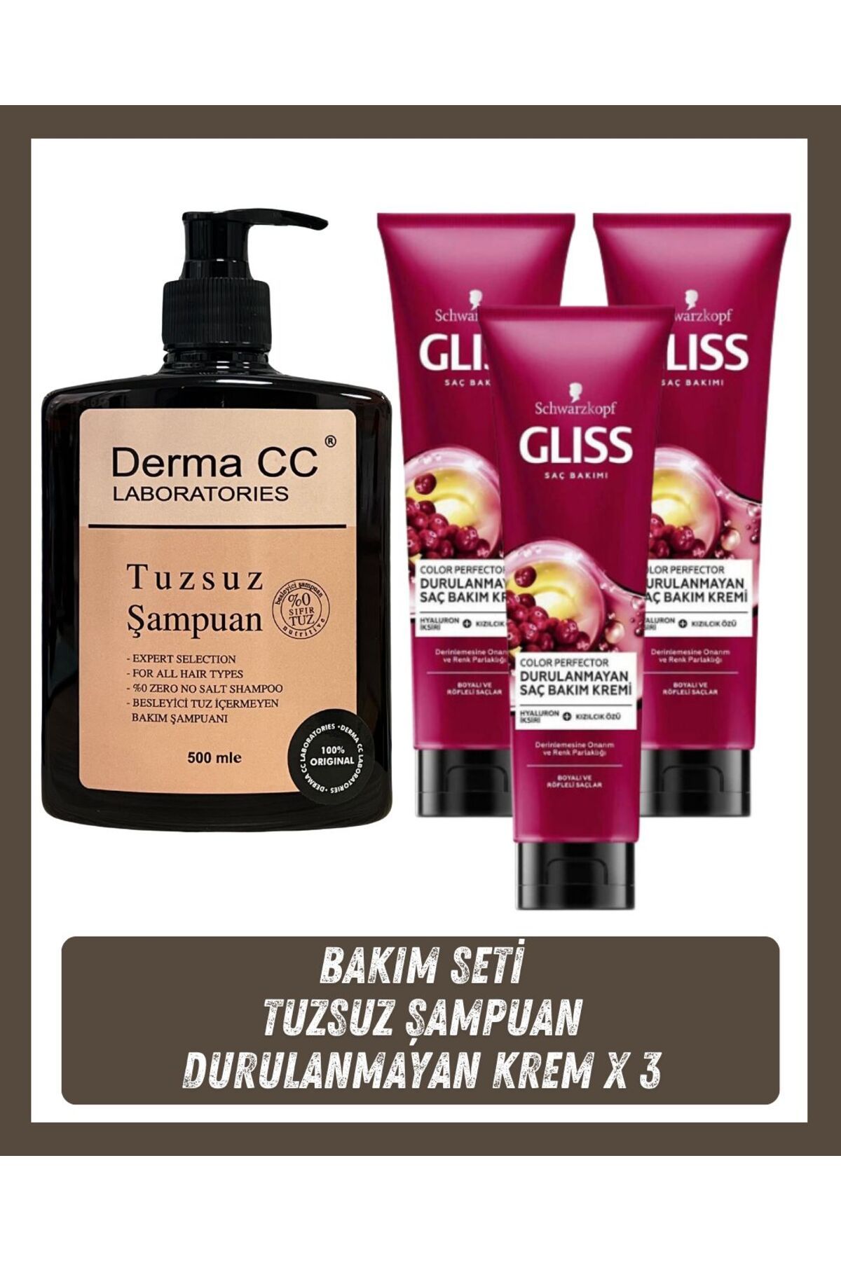 Durulanmayan Saç Bakim Kremi 150ml X 3 Adet Derma CC LABORATORIES Tuzsuz Sampuan 500 ml