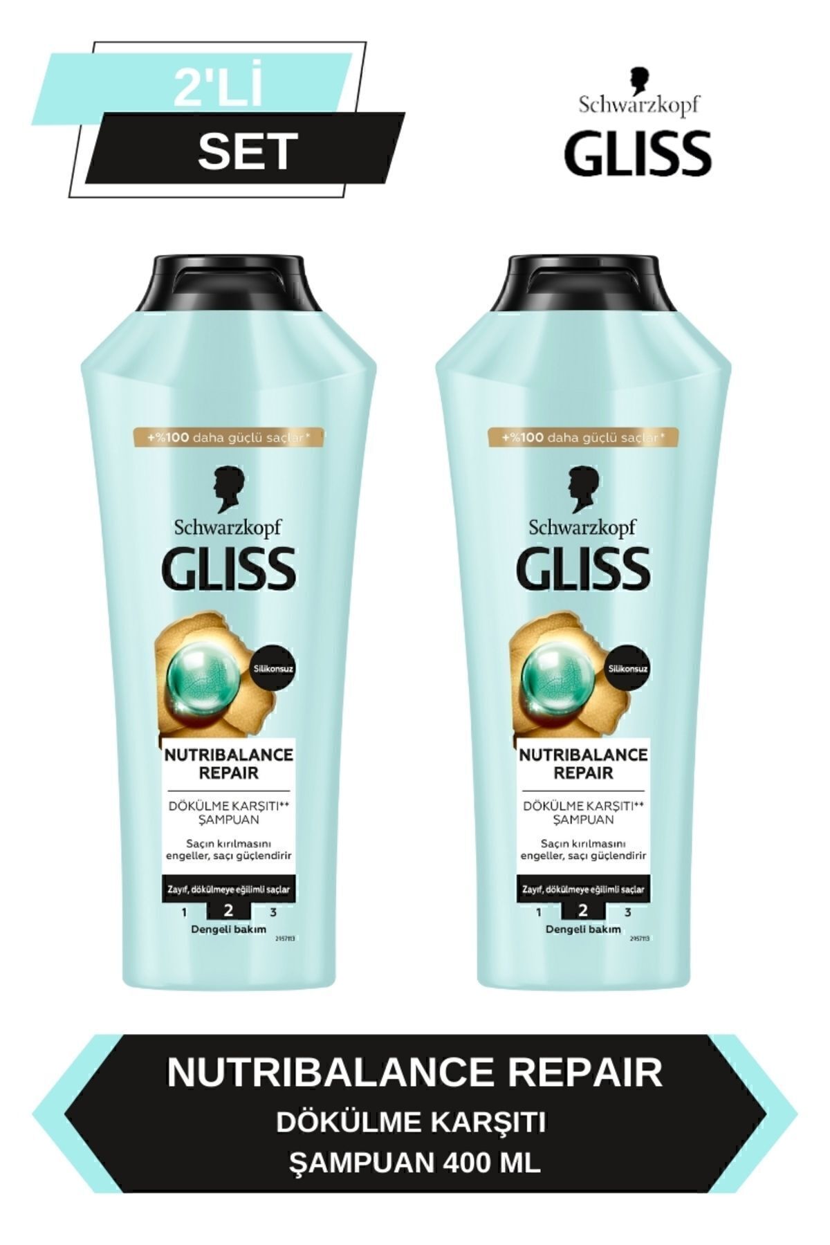 Gliss Nutribalance Repair Anti-Hair Loss Shampoo 400 ml x 2 Pieces