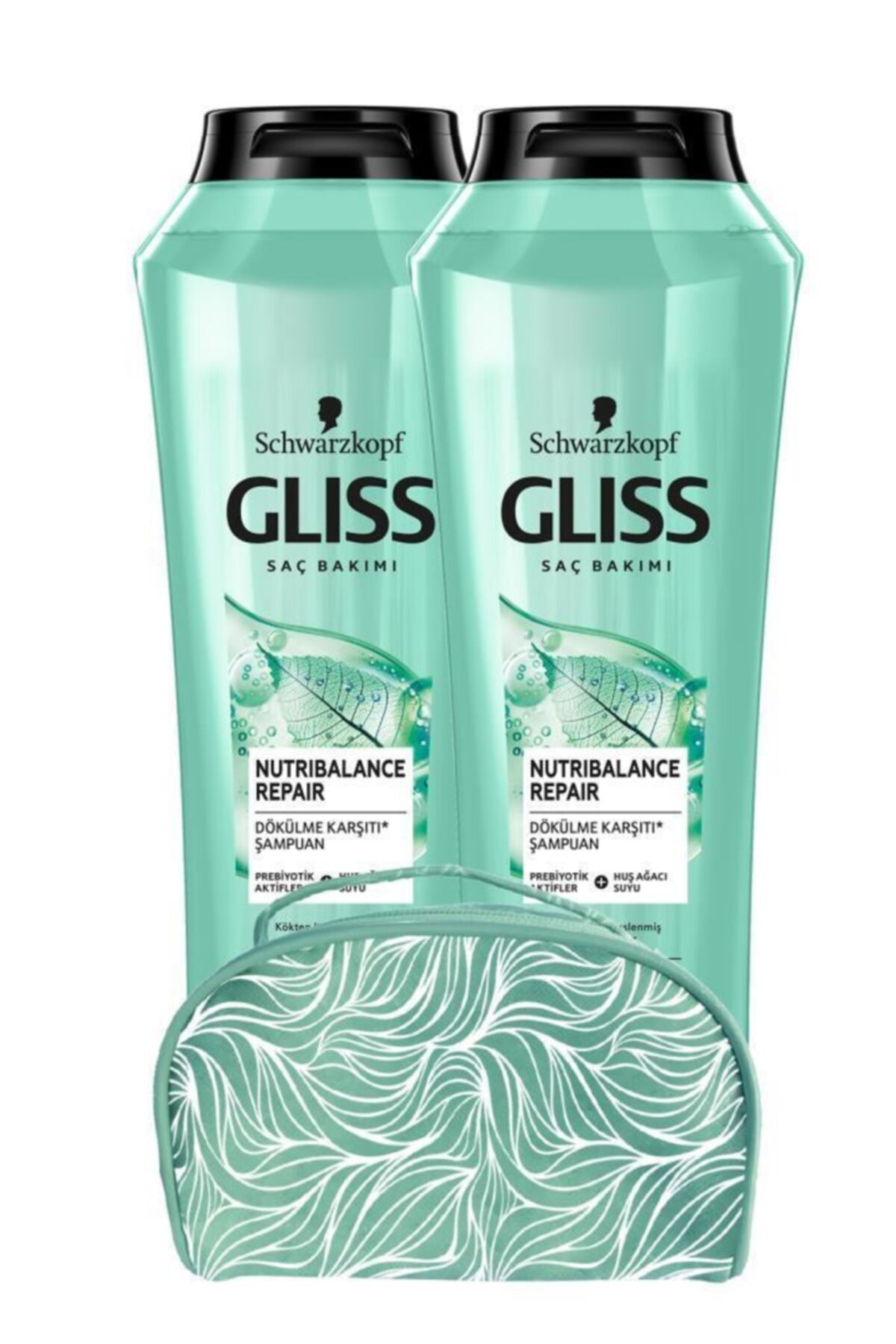 Gliss Nutribalance Shampoo 500 ml X2 Pieces + Makeup Bag